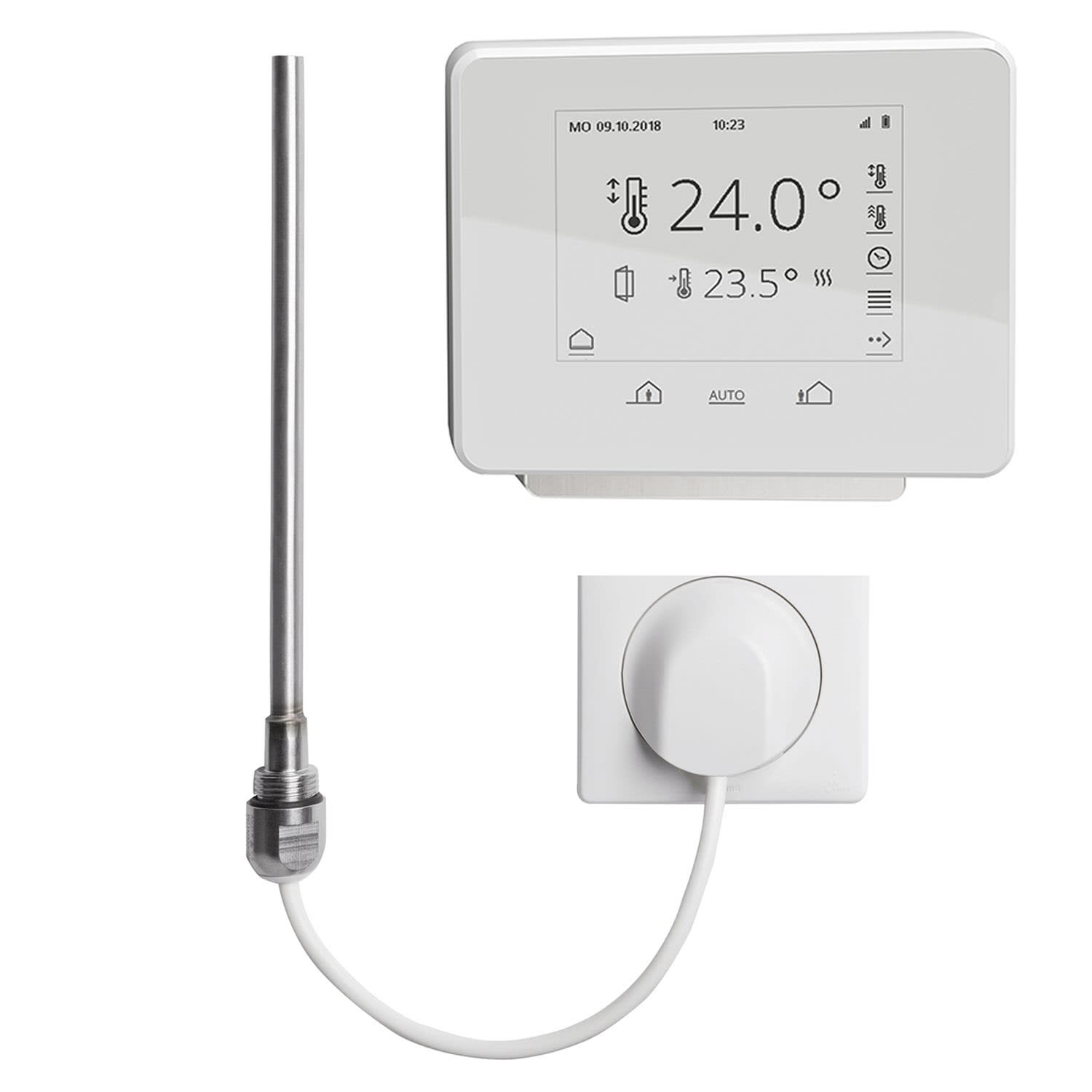 - Raumtemperaturunabhängige, tagesindividuelle Handtuchwärmerfunktion während programmierter Zeitintervalle