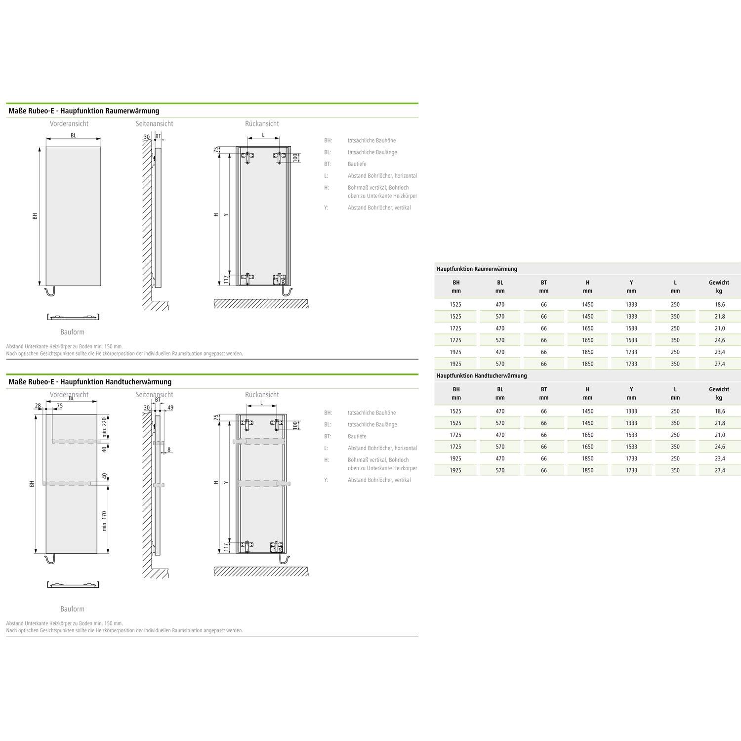 - Anschlüsse: der elektrische Anschluss befindet sich rückseitig an der Heizkörperunterkante