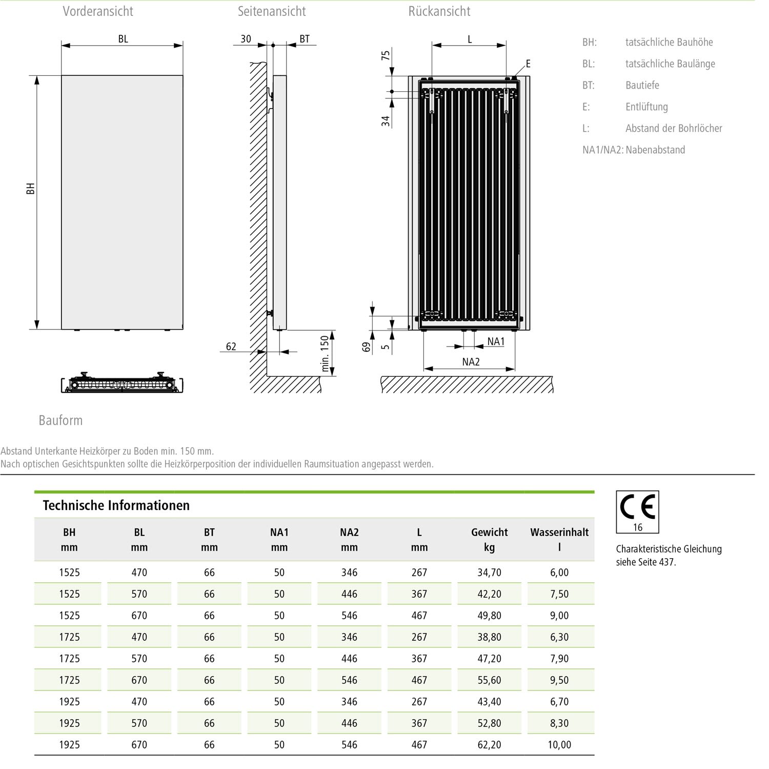 - Bei Anschluss mittig unten für Einrohr-Betrieb geeignet