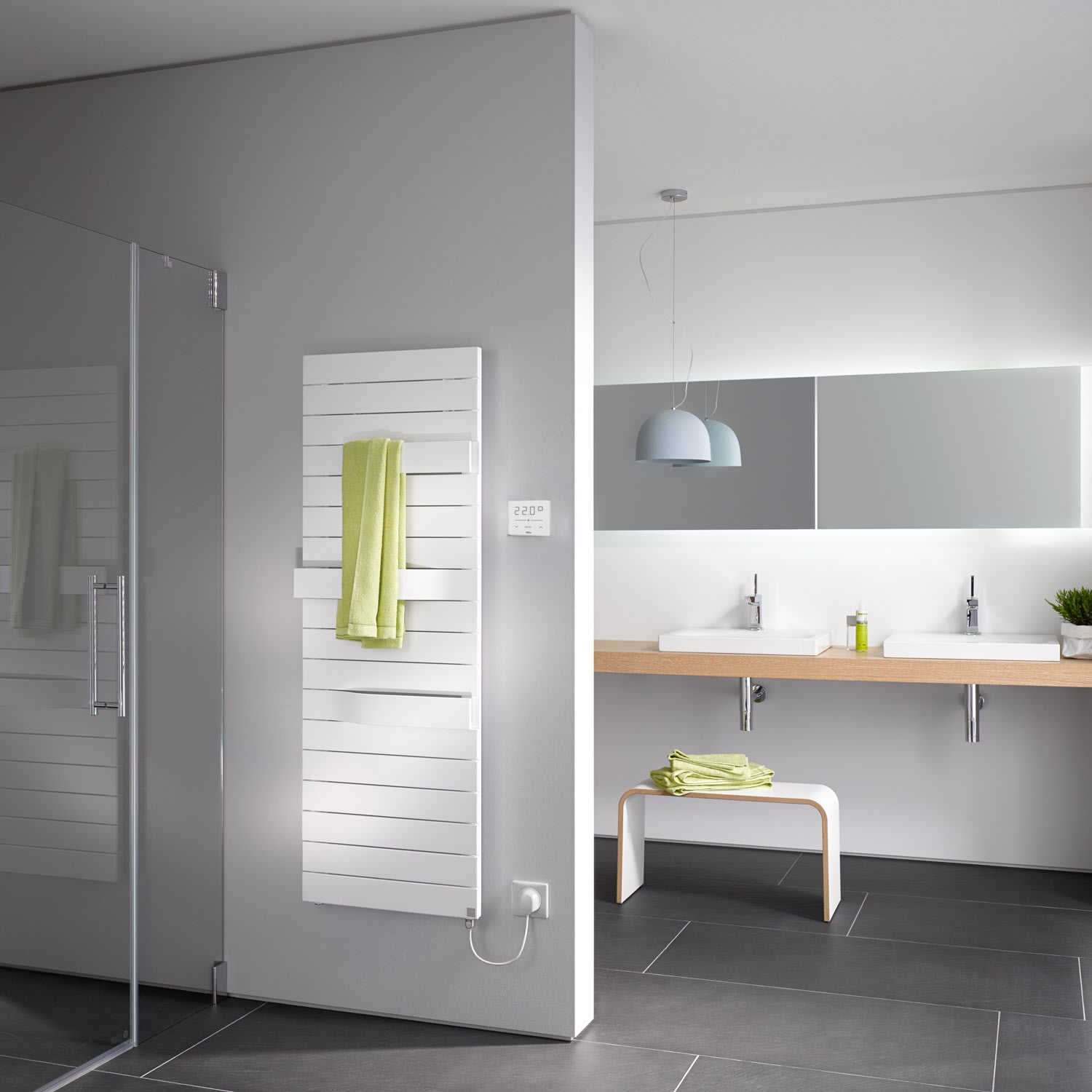 - Umstellung von Raumtemperaturregelung auf Handtuchwärmerfunktion im Einstellmenü des Reglers möglich