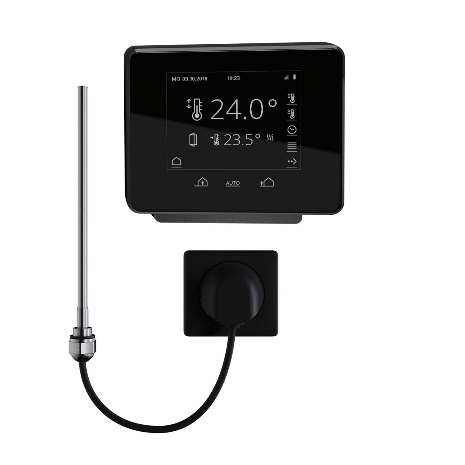 - besteht aus einem Wandauslass (Schutzart IPX4) inkl. Funkempfänger, einem elektronisch geregelten Heizstab und dem WRX Regler
