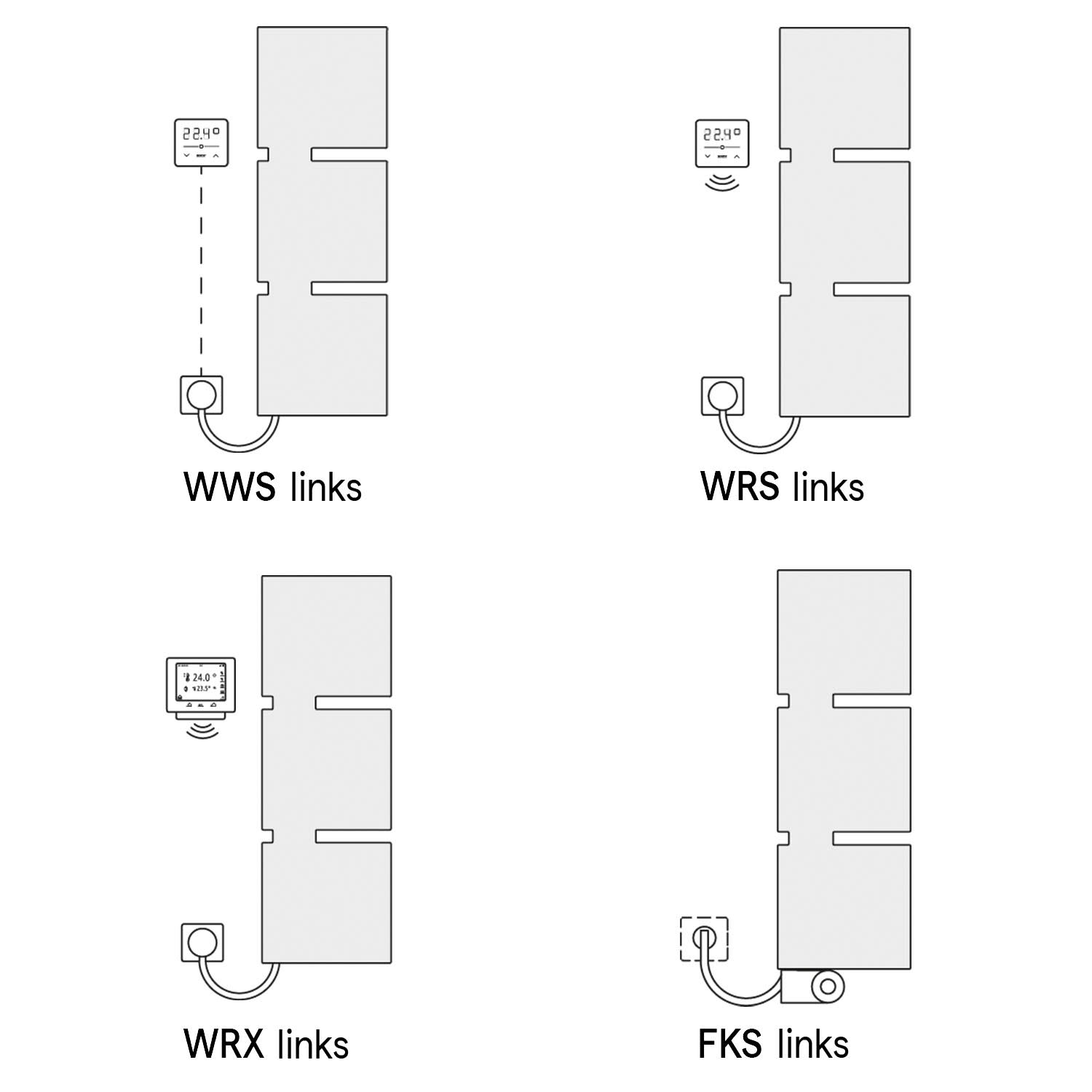 - Regler besteht aus einem Wandauslass inkl. Funkempfänger, einem elektronisch geregelten Heizstab und dem WRS Regler
