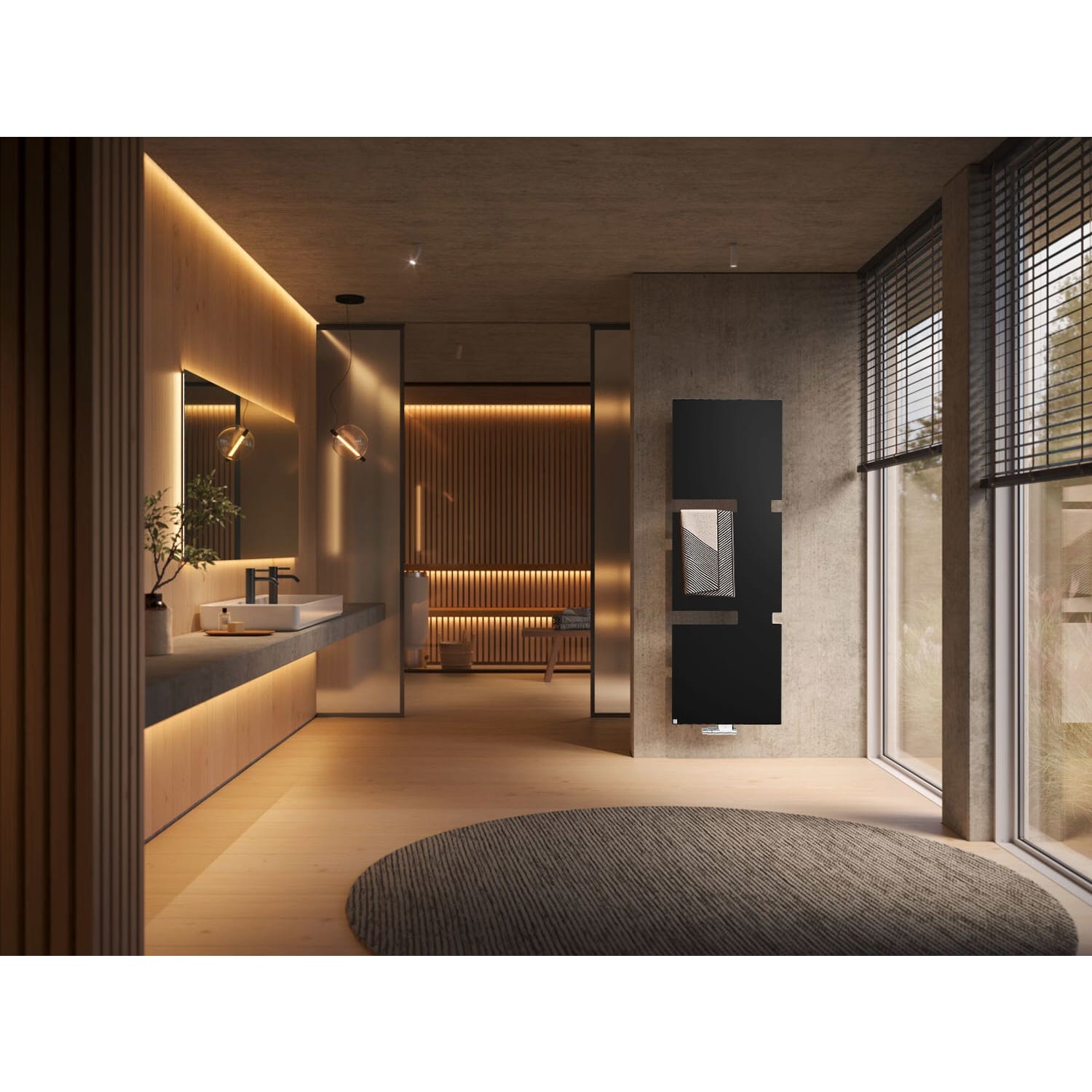 - Designheizkörper aus Stahl im eleganten, flächigen Design mit gerundeten Kanten