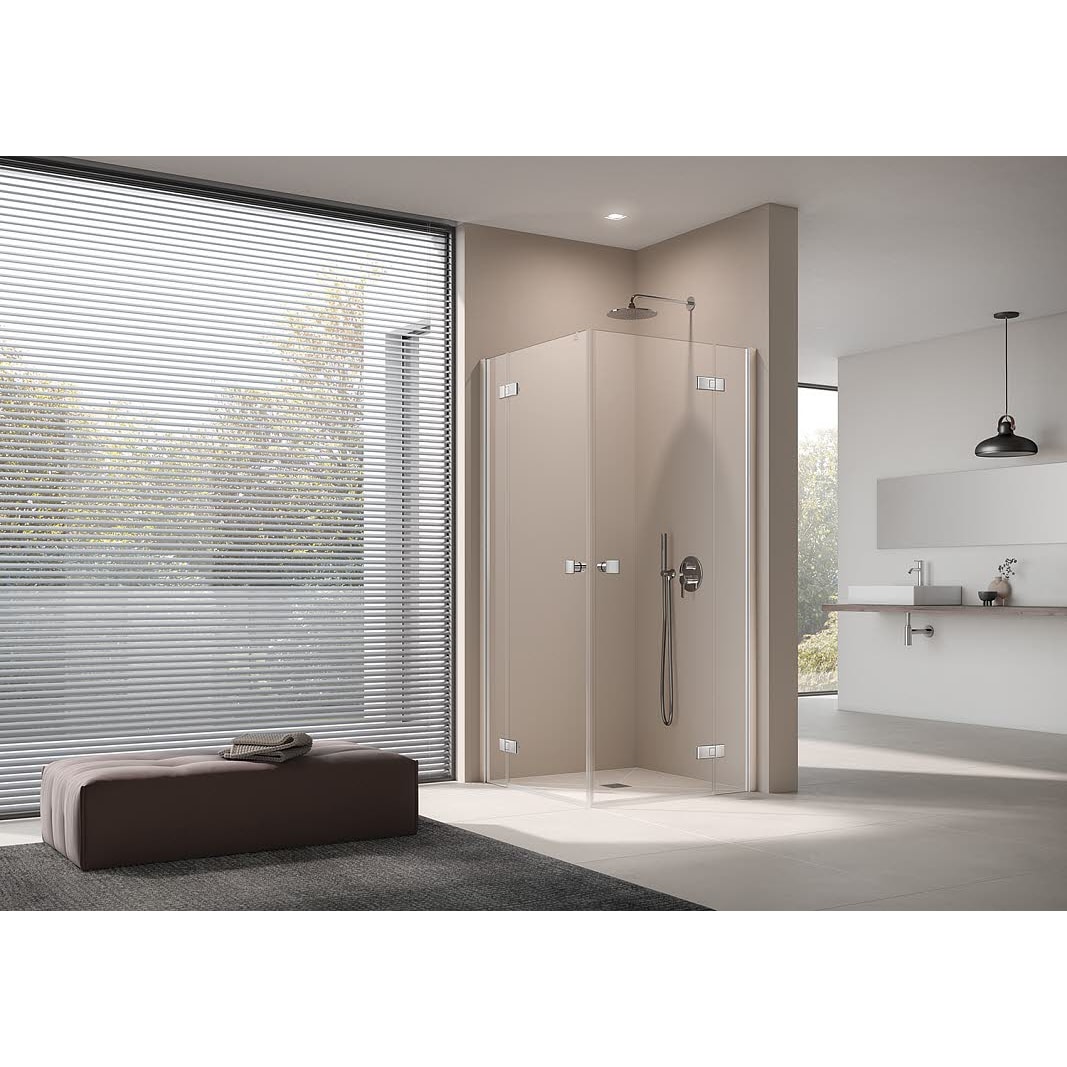 - teilgerahmter Eckeinstieg mit zwei Glasflügeln