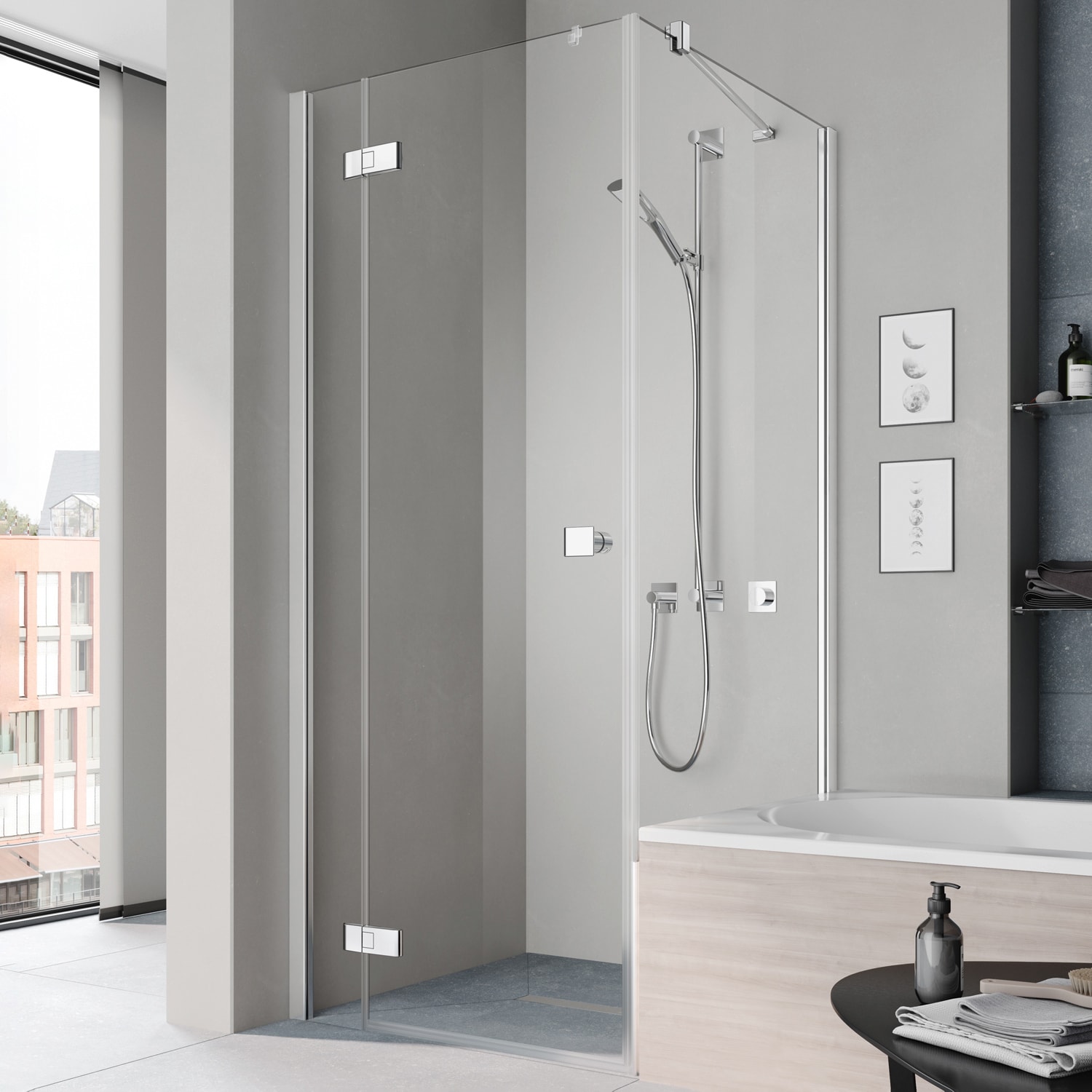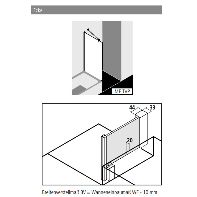 - teilgerahmte, verkürzte Seitenwand zur Montage neben der Badewanne (auf BW nicht möglich)
