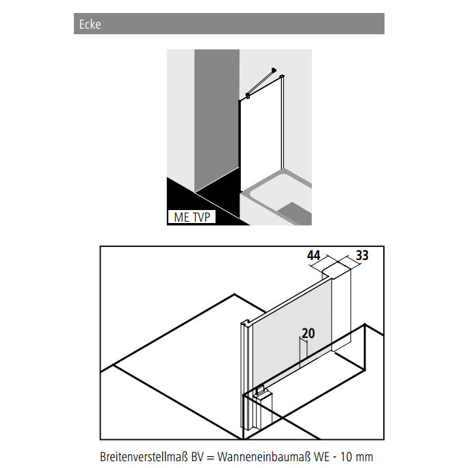 - teilgerahmte, verkürzte Seitenwand zur Montage neben der Badewanne (auf BW nicht möglich)