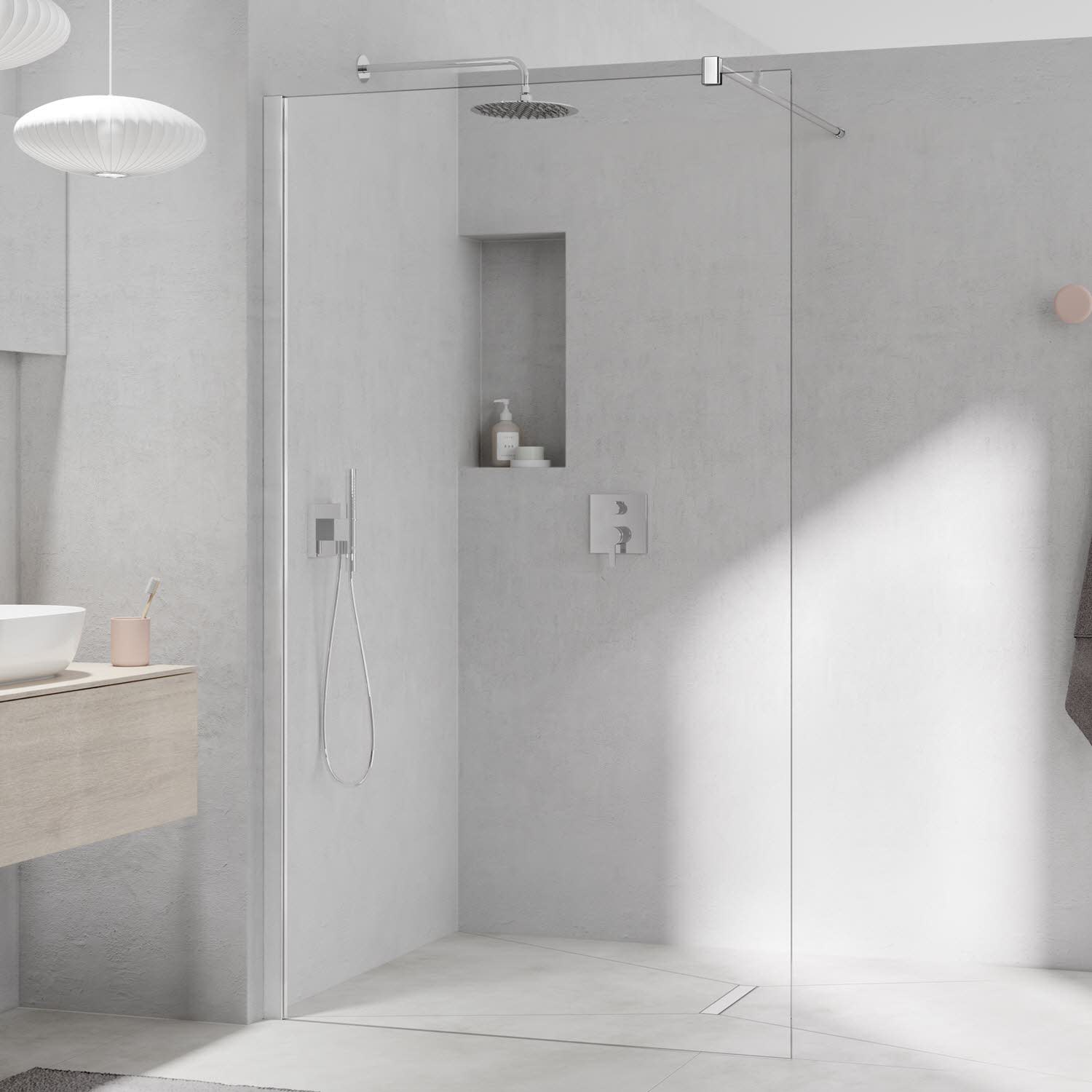 Kermi MENA teilgerahmte WALK-IN Wall mit 90° Stabilisierung 180 cm, schmales Profil
