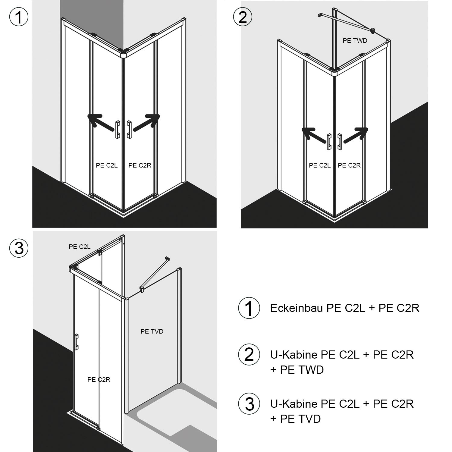 - Für eine vollständige Duschabtrennung werden zwei Halbteile benötigt!