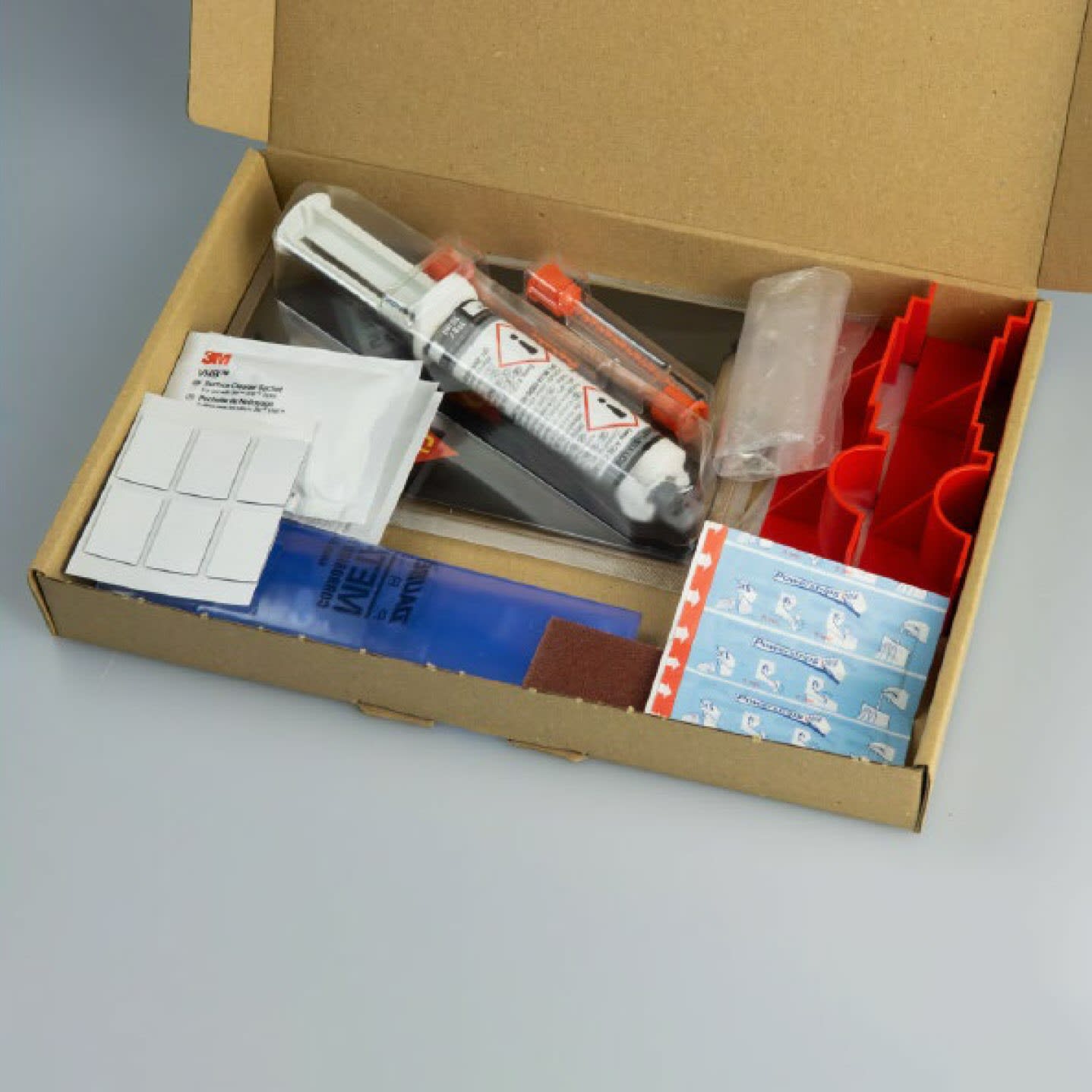 - Das KermiGLUE Klebeset, bestehend aus einem Hochleistungsklebstoff