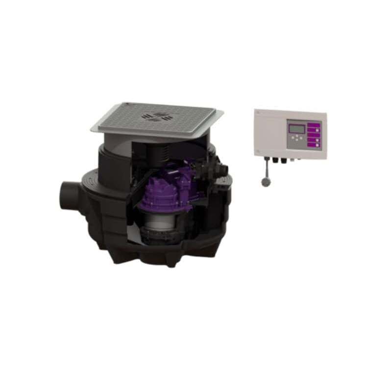 Der Sammelbehälter aus dauerhaft beständigem Kunststoff (PE) besitzt einen abgeschlossenen Pumpenraum.