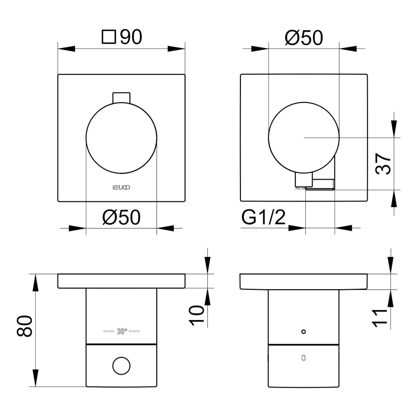 Keuco EDITION 11 Thermostatarmatur Set für 2 Verbraucher, mit Schlauchanschluss