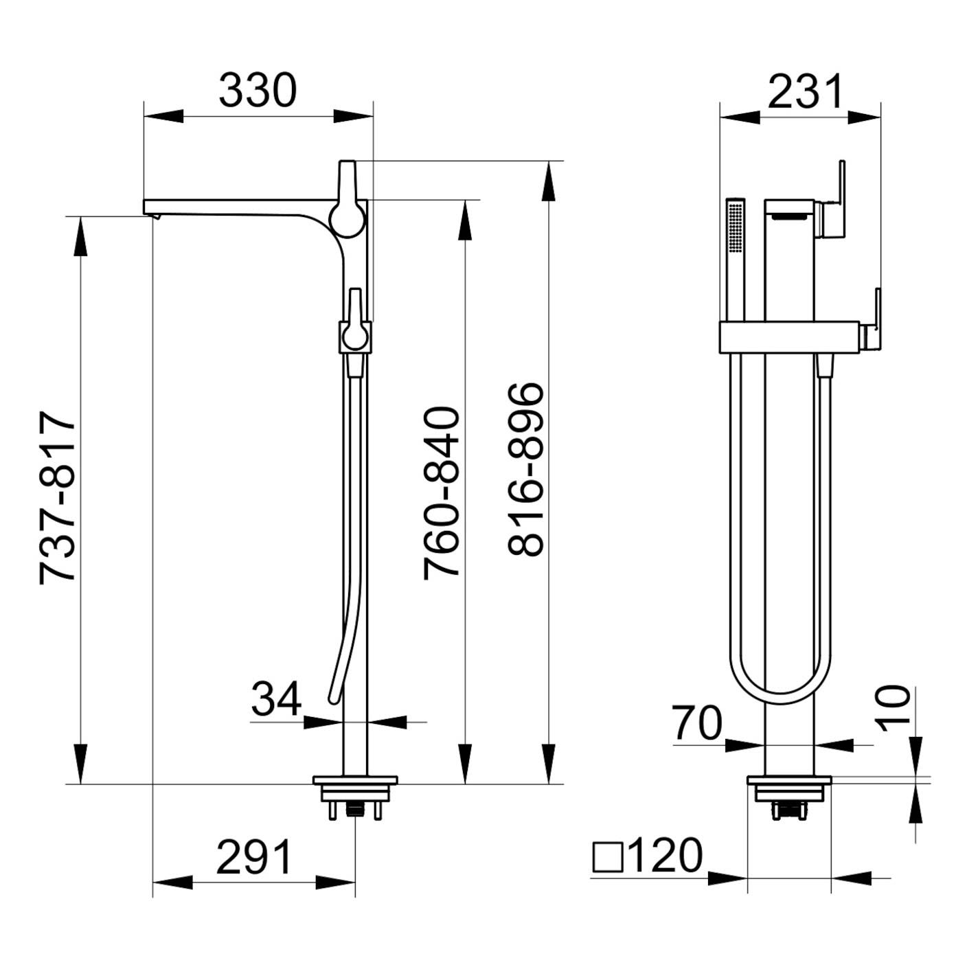 Keuco EDITION 11 Einhebel-Wannenmischer, freistehend, mit Brauseschlauch und Stabhandbrause