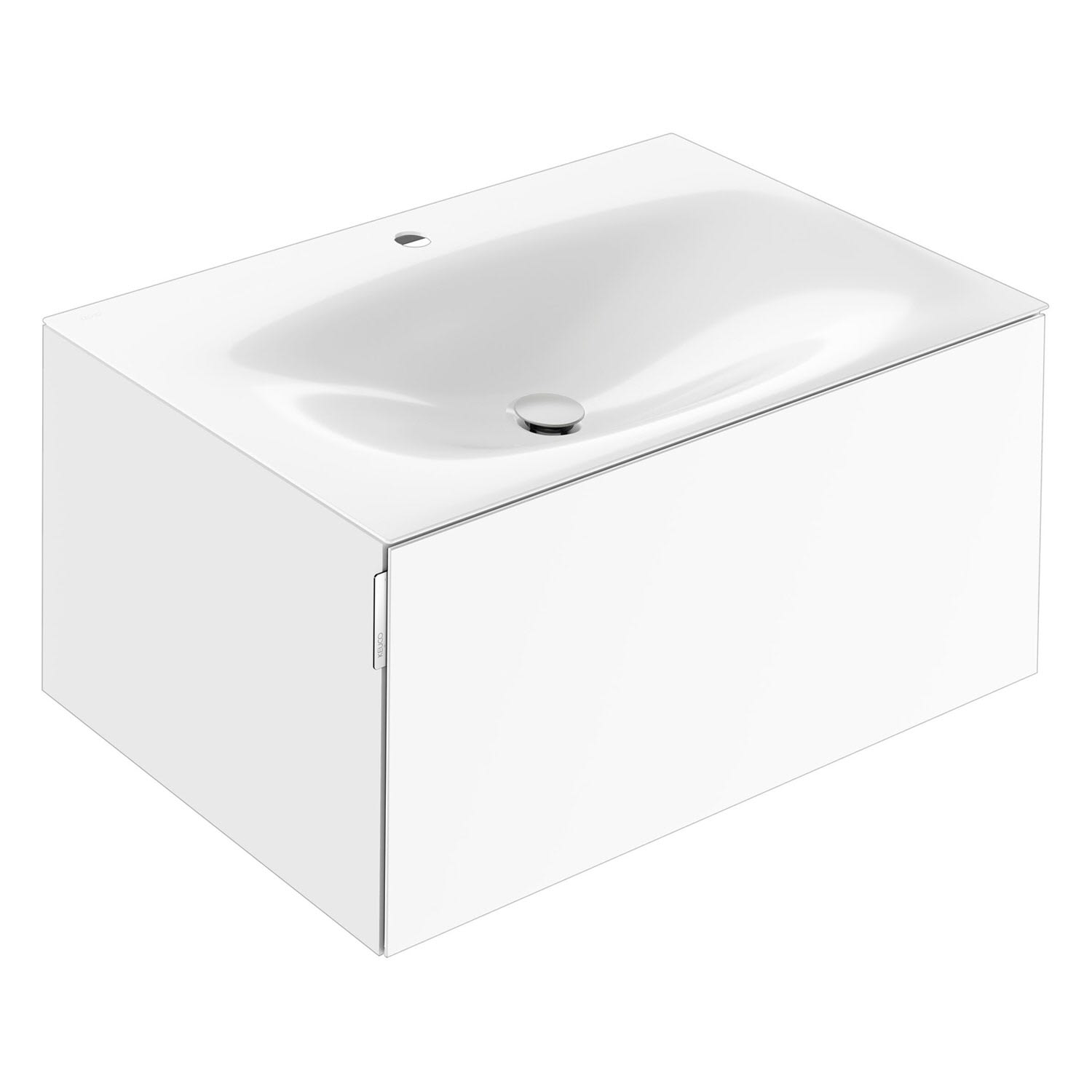 Keuco EDITION 11 Art Emaille-Waschtisch mit Waschtischunterschrank und Schaftventil, 1 Auszug, 1 Hahnloch, 80 cm