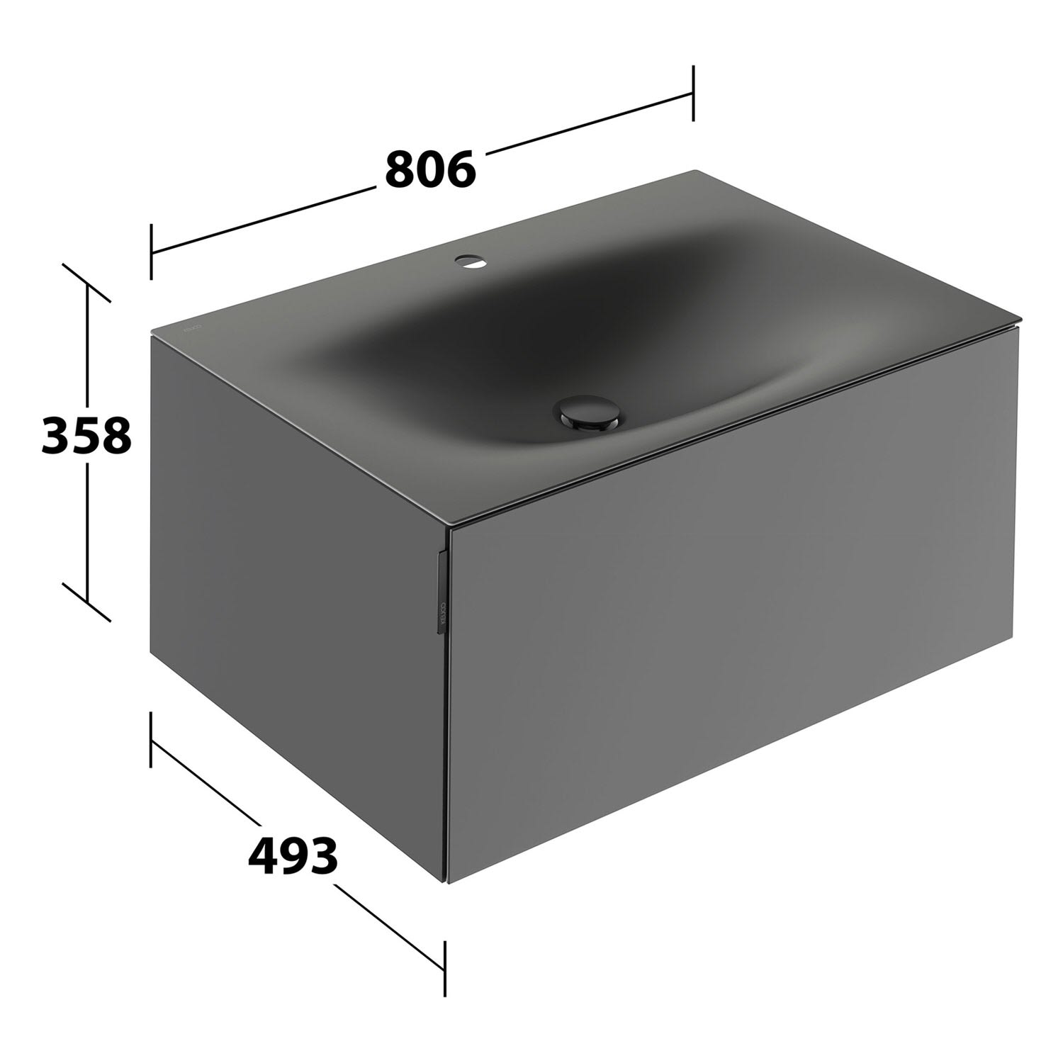 Keuco EDITION 11 Art Emaille-Waschtisch mit Waschtischunterschrank und Schaftventil, 1 Auszug, 1 Hahnloch, 80 cm