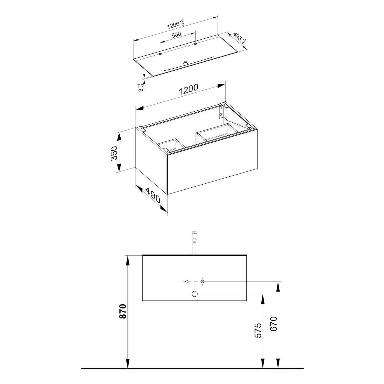 - Abmessungen (BxTxH): 120,6 x 49,3 x 0,4 cm
