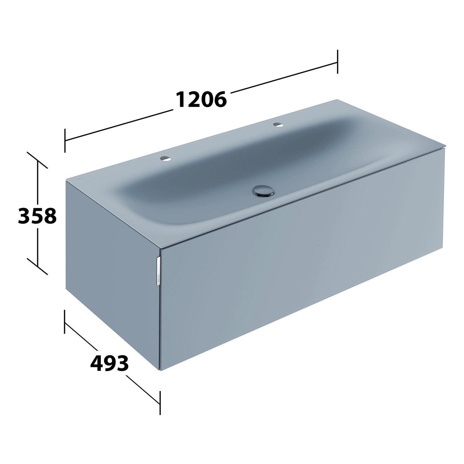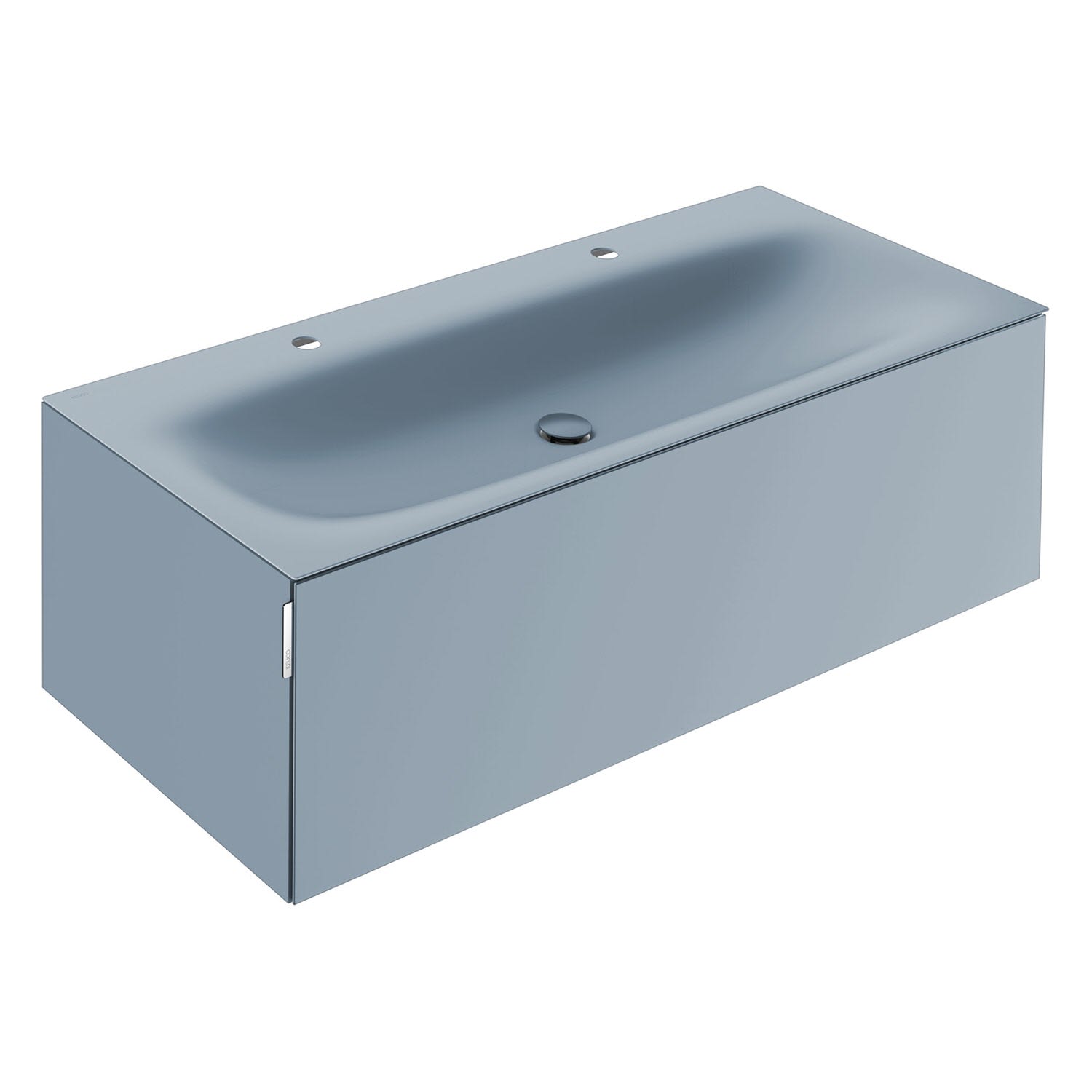 Keuco EDITION 11 Art Emaille-Doppelwaschtisch mit Waschtischunterschrank und Schaftventil, 1 Auszug, 2 Hahnlöcher, 120 cm