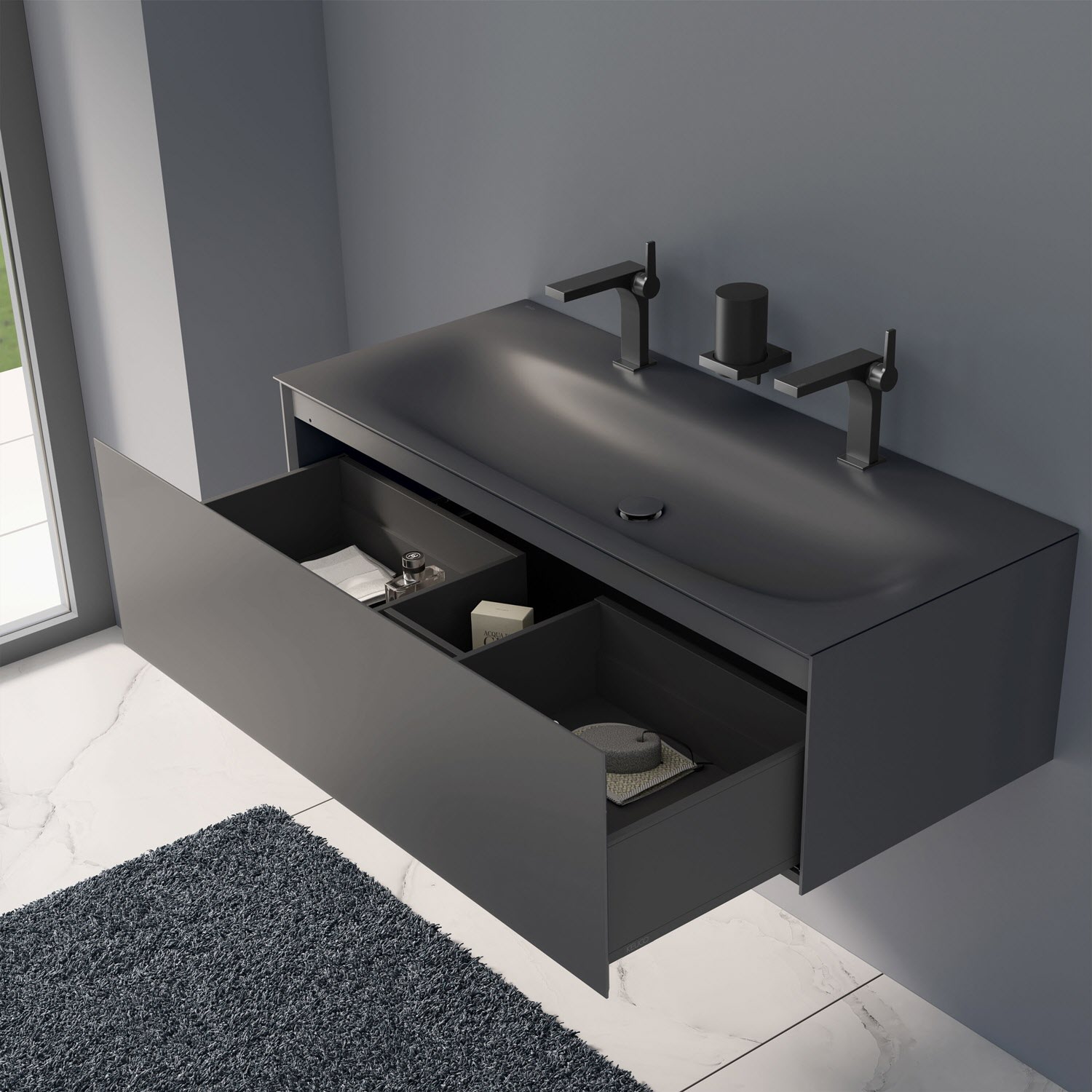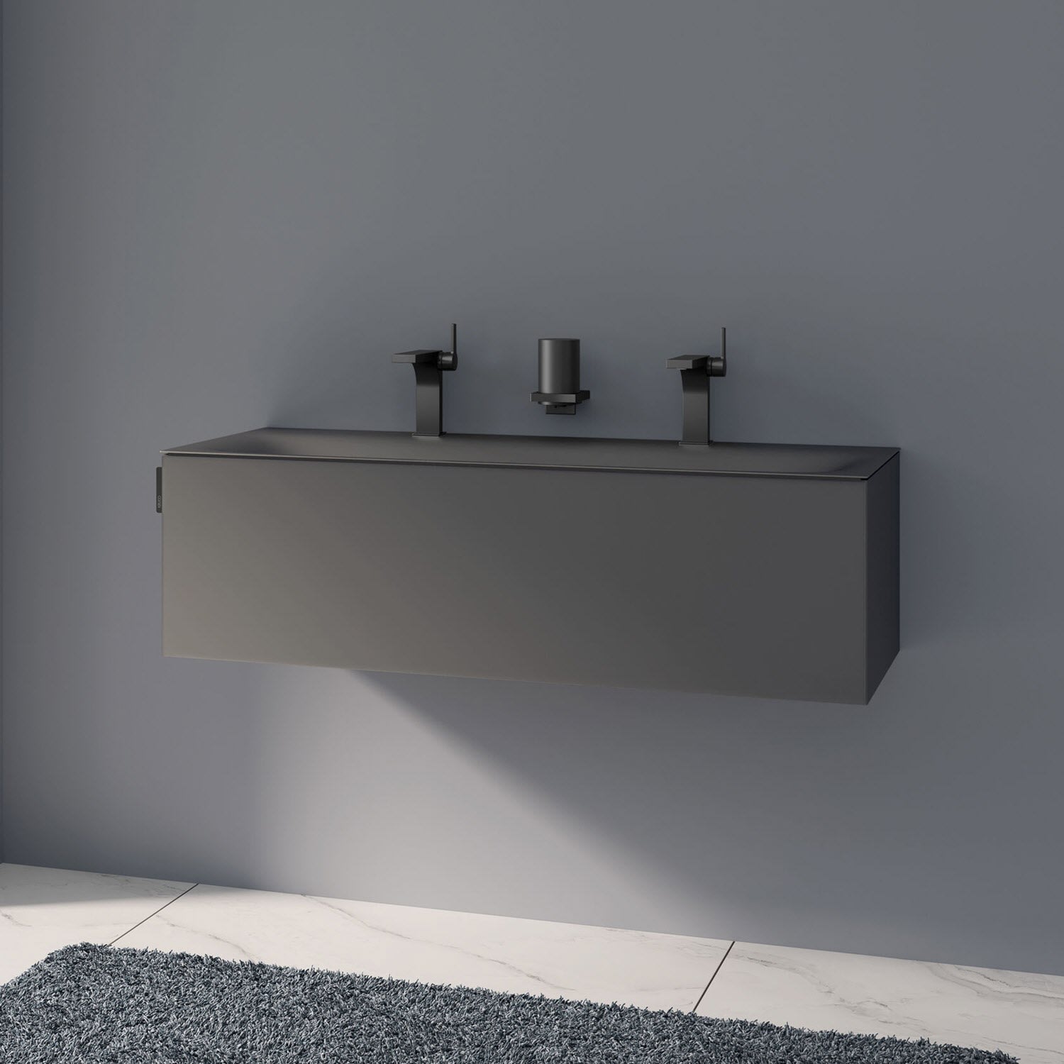 Der Waschtisch besteht aus glasiertem Titanstahl, wodurch er äußerst robust ist. Die porenfreie Emaille-Oberfläche bietet Schmutz und Bakterien kaum Angriffsfläche und lässt sich sehr leicht reinigen. Seine filigranen Kanten von extrem schlanken 4 mm verschmelzen nahezu mit dem Waschtischunterbau und erzeugen einen einzigartigen Look, bei der Möbel und Waschtisch wie aus einem Guss wirken. Das mitgelieferte Schaftventil ist farblich zum Waschtisch abgestimmt.