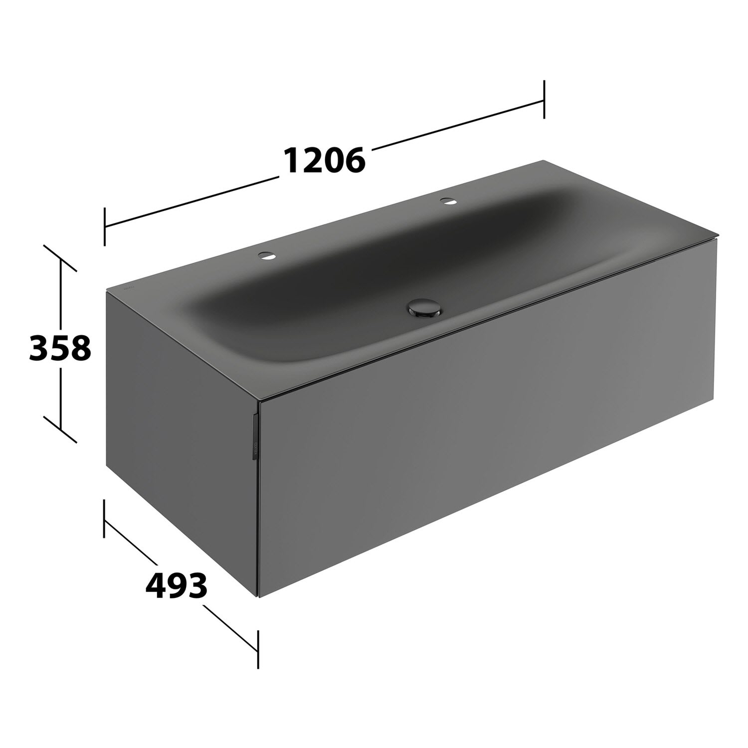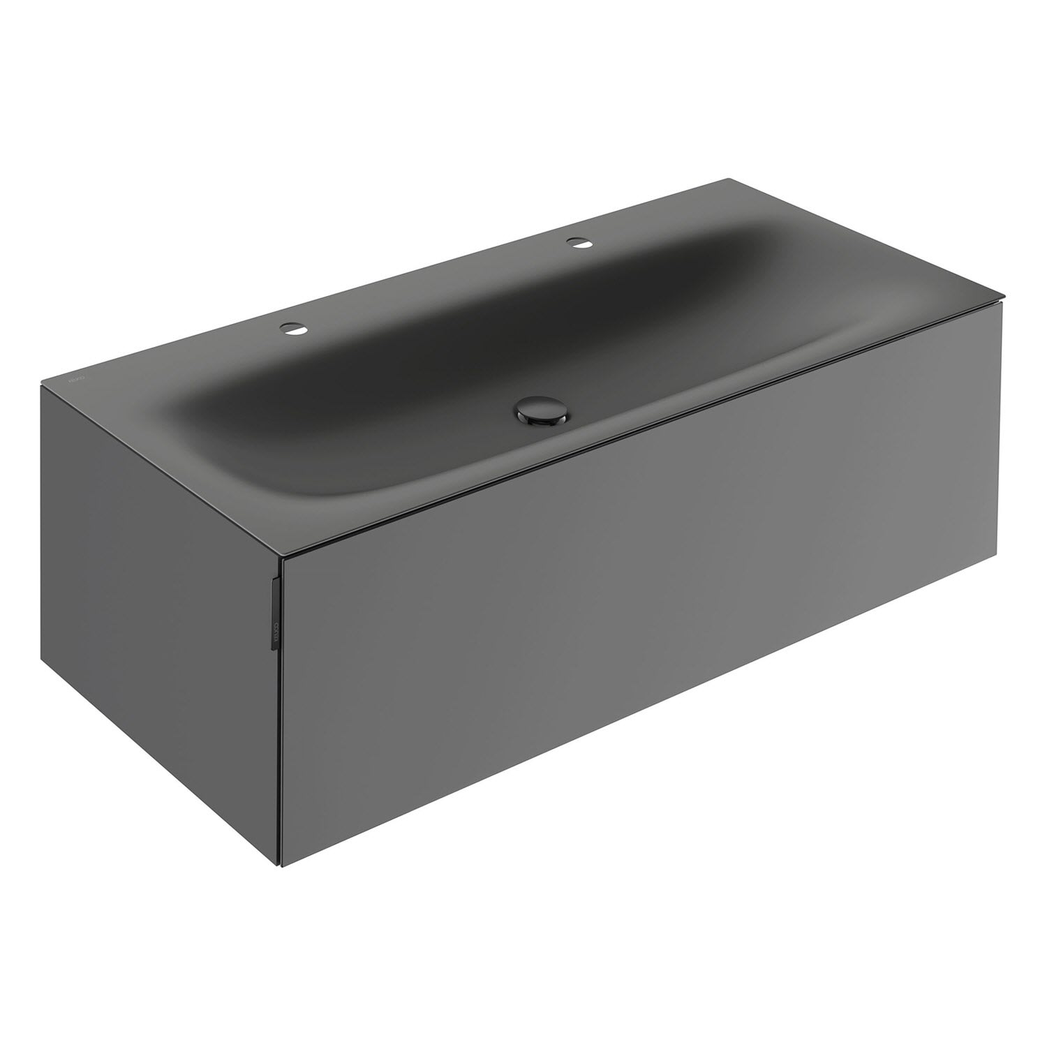 Keuco EDITION 11 Art Emaille-Doppelwaschtisch mit Waschtischunterschrank und Schaftventil, 1 Auszug, 2 Hahnlöcher, 120 cm