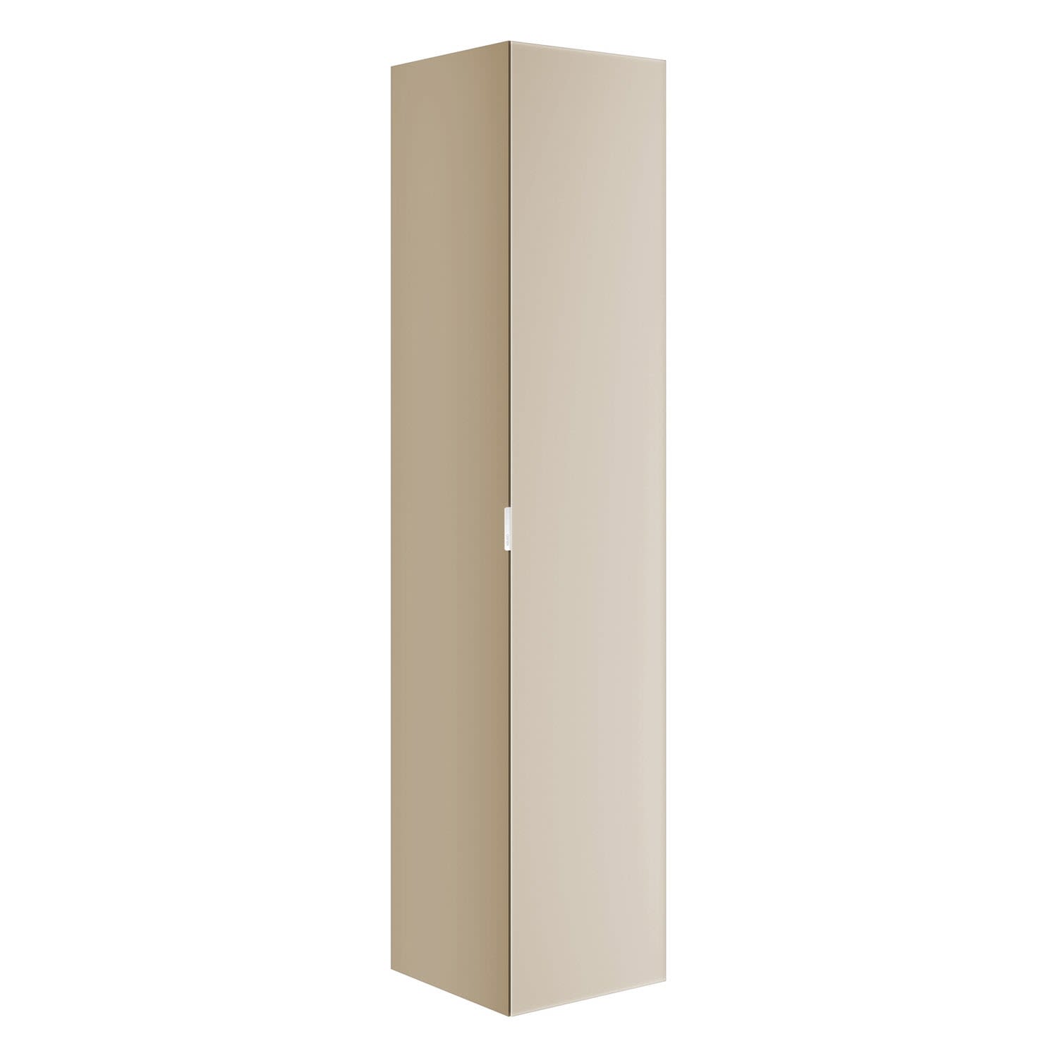 Der Hochschrank der Serie zeigt Größe mit seinem Stauraum über mehrere Ebenen: Zwei feste Böden bilden das mittlere Fach, während vier Glasböden zusätzlichen Stauraum bieten. Einstellbare Türdämpfer sorgen für sanftes Schließen. Der Hochschrank ist wahlweise mit einem Spiegel auf der Türinnenseite und Steckdose im mittleren Fach oder ohne diese Ausstattungen erhältlich.