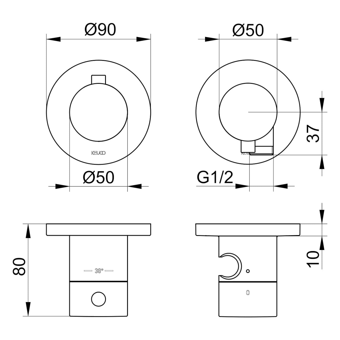 - Anschlussart: Grundkörper G 1/2 (nicht im Lieferumfang enthalten)