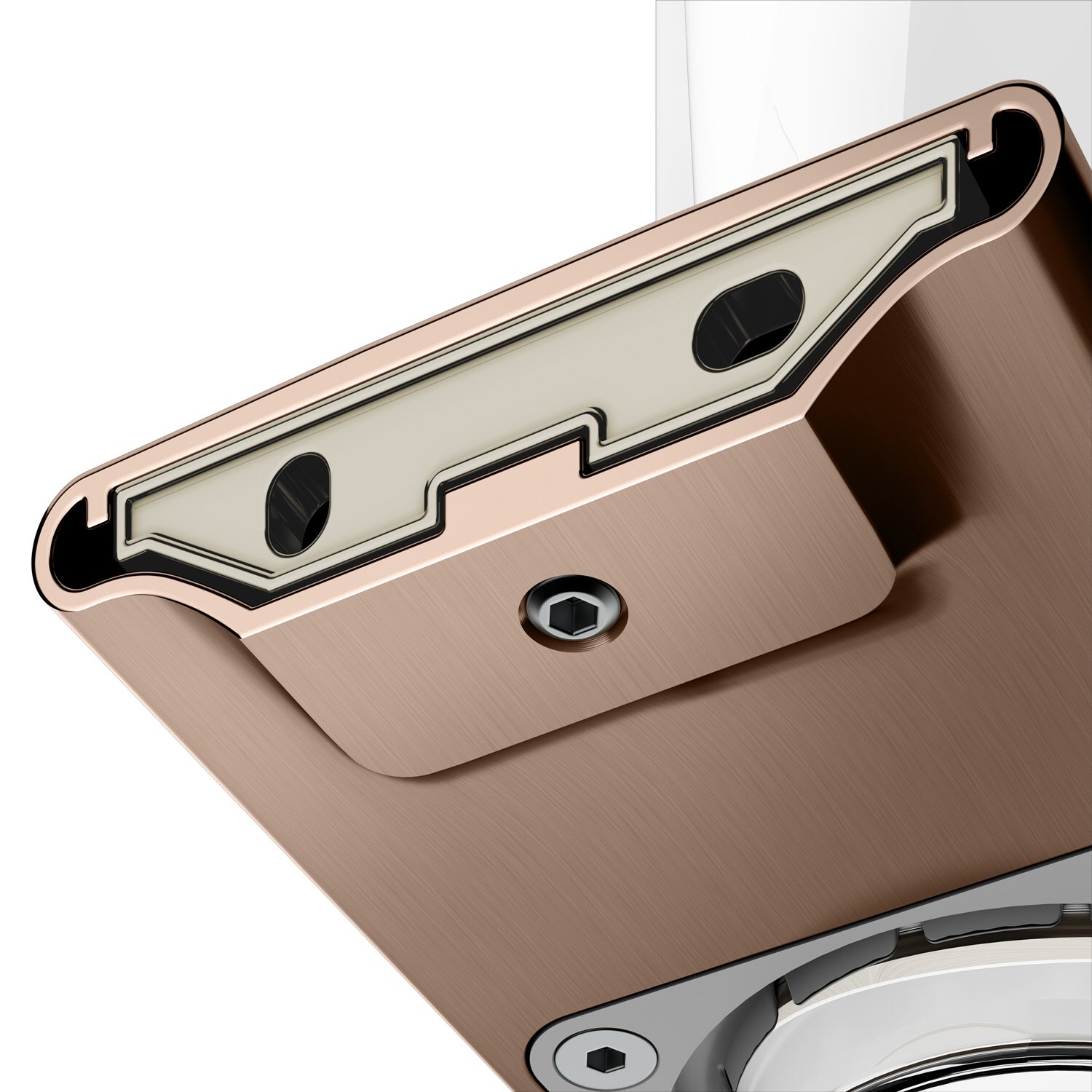 - gebürstete Oberfläche mit galvanischer Weißbronzierung und Beschichtung aus 19-20 karätigem Rotgold