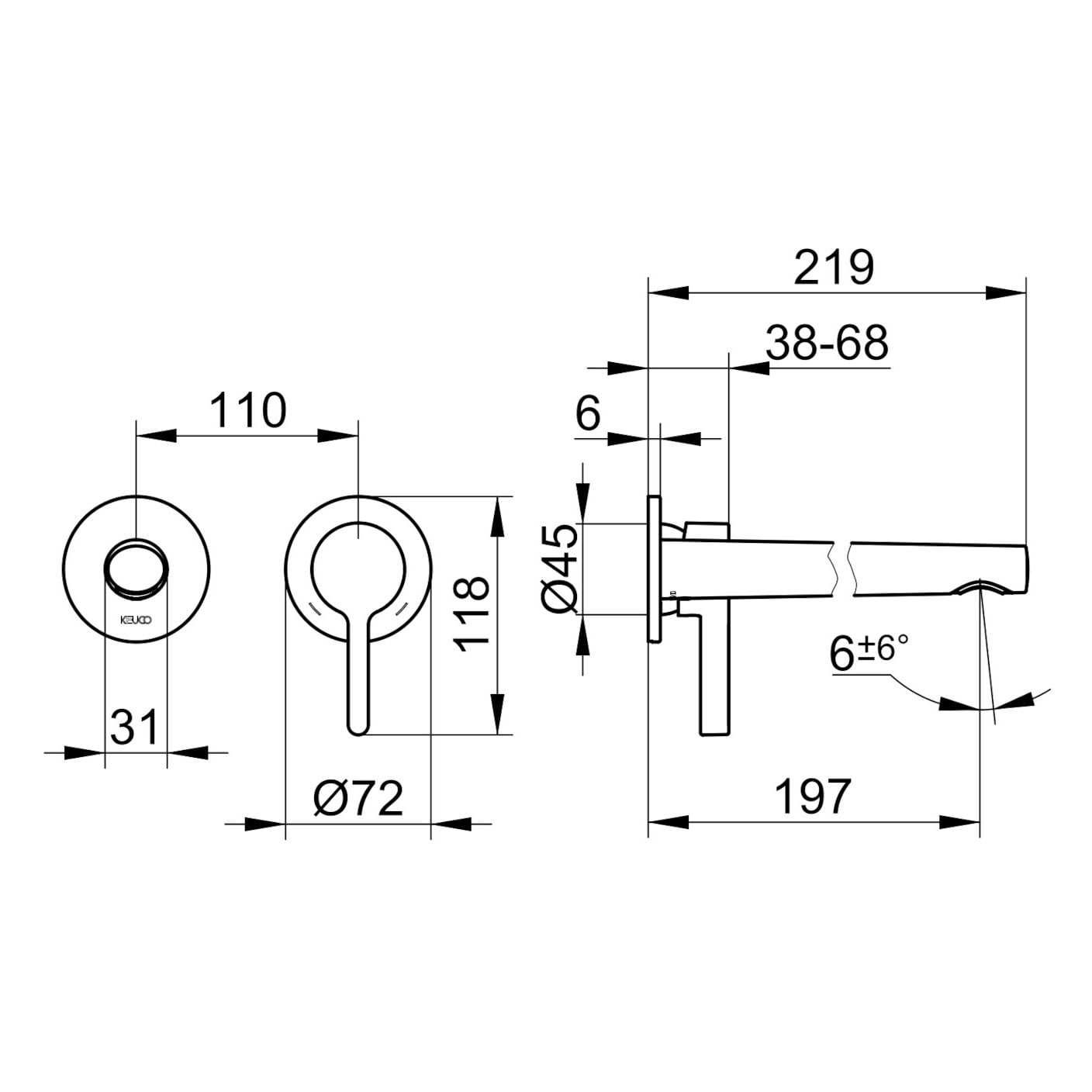 Keuco EDITION 400 Einhebel-Waschtischmischer Unterputz, 2-Loch, Ausladung 19,7 cm