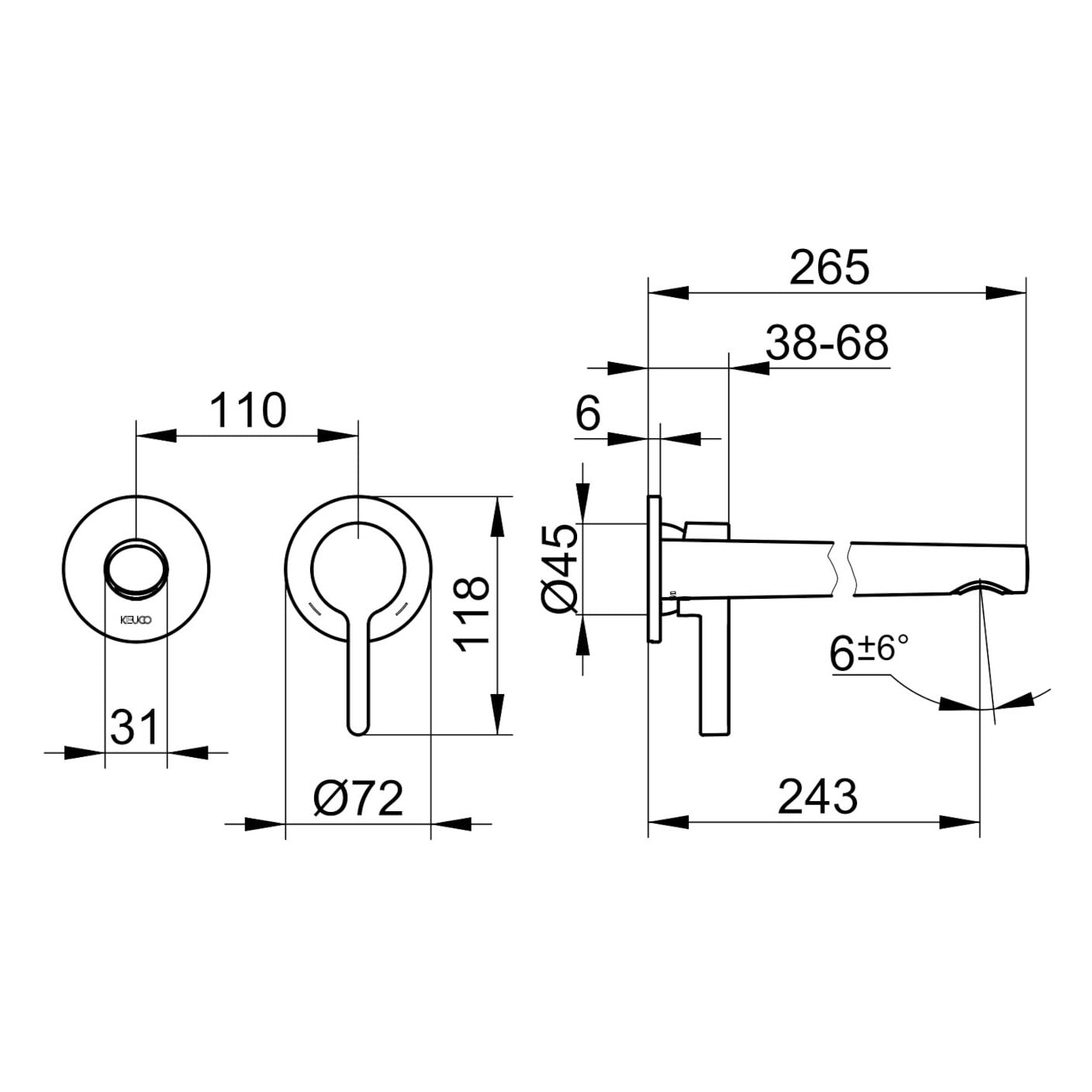 Keuco EDITION 400 Einhebel-Waschtischmischer Unterputz, 2-Loch, Ausladung 24,3 cm