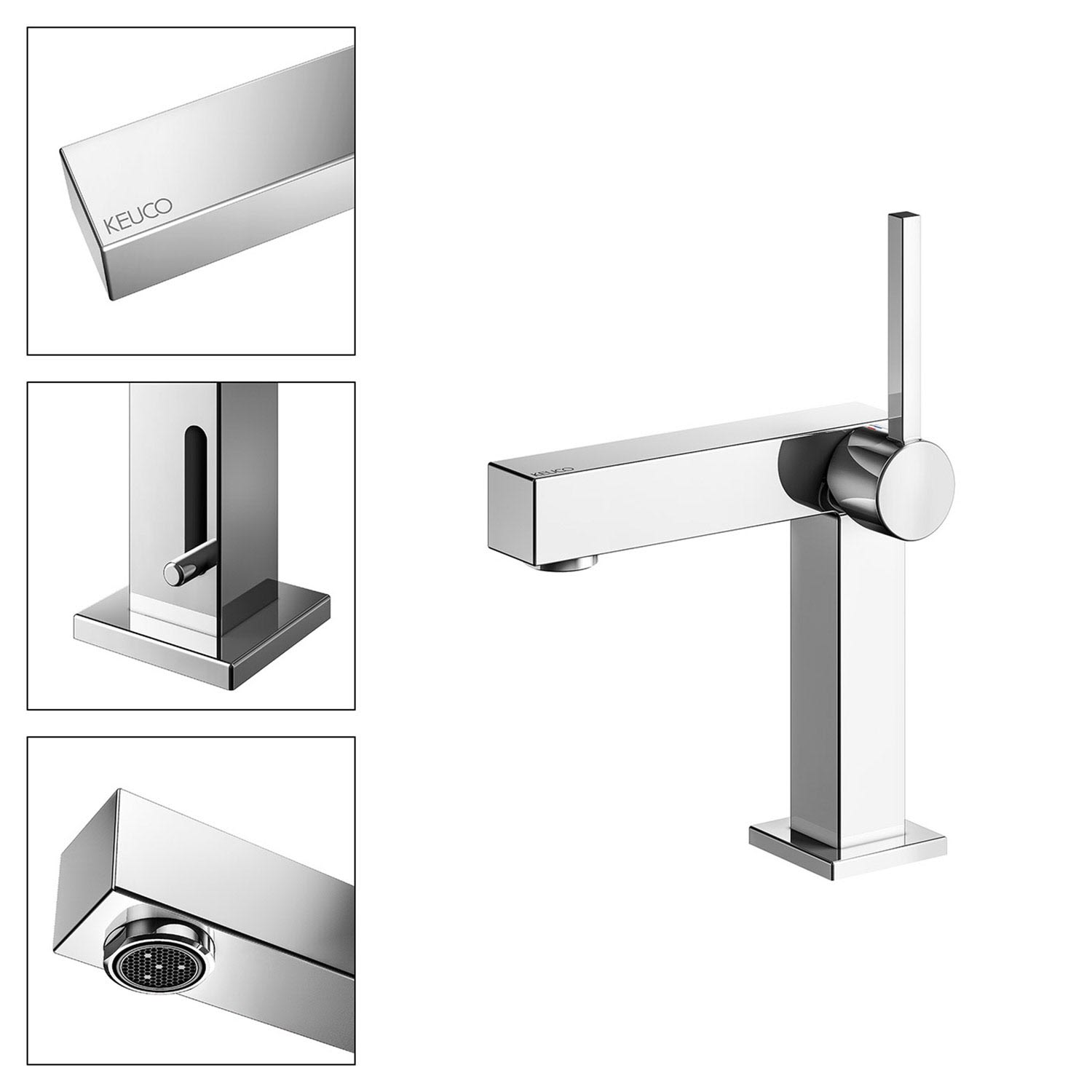 Keuco EDITION 90 Square Einhebel-Waschtischmischer mit Ablaufgarnitur, Ausladung: 11,5 cm