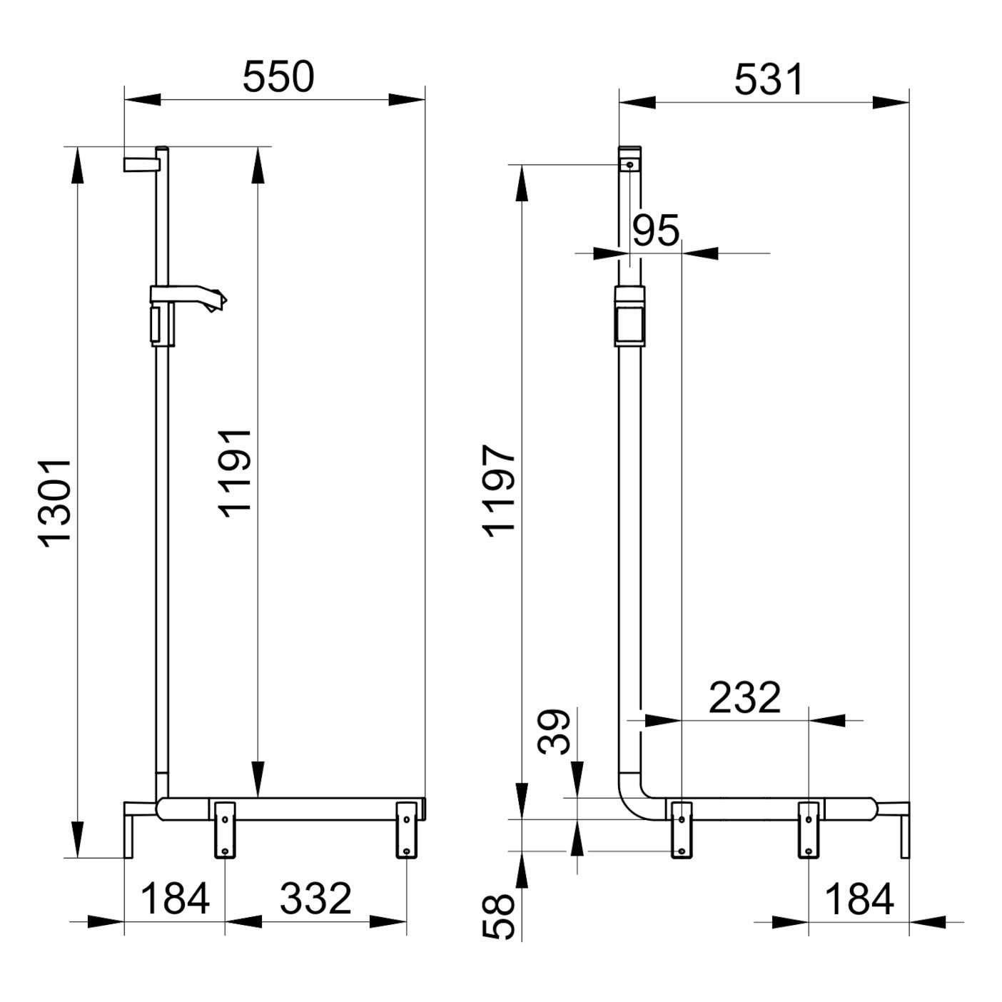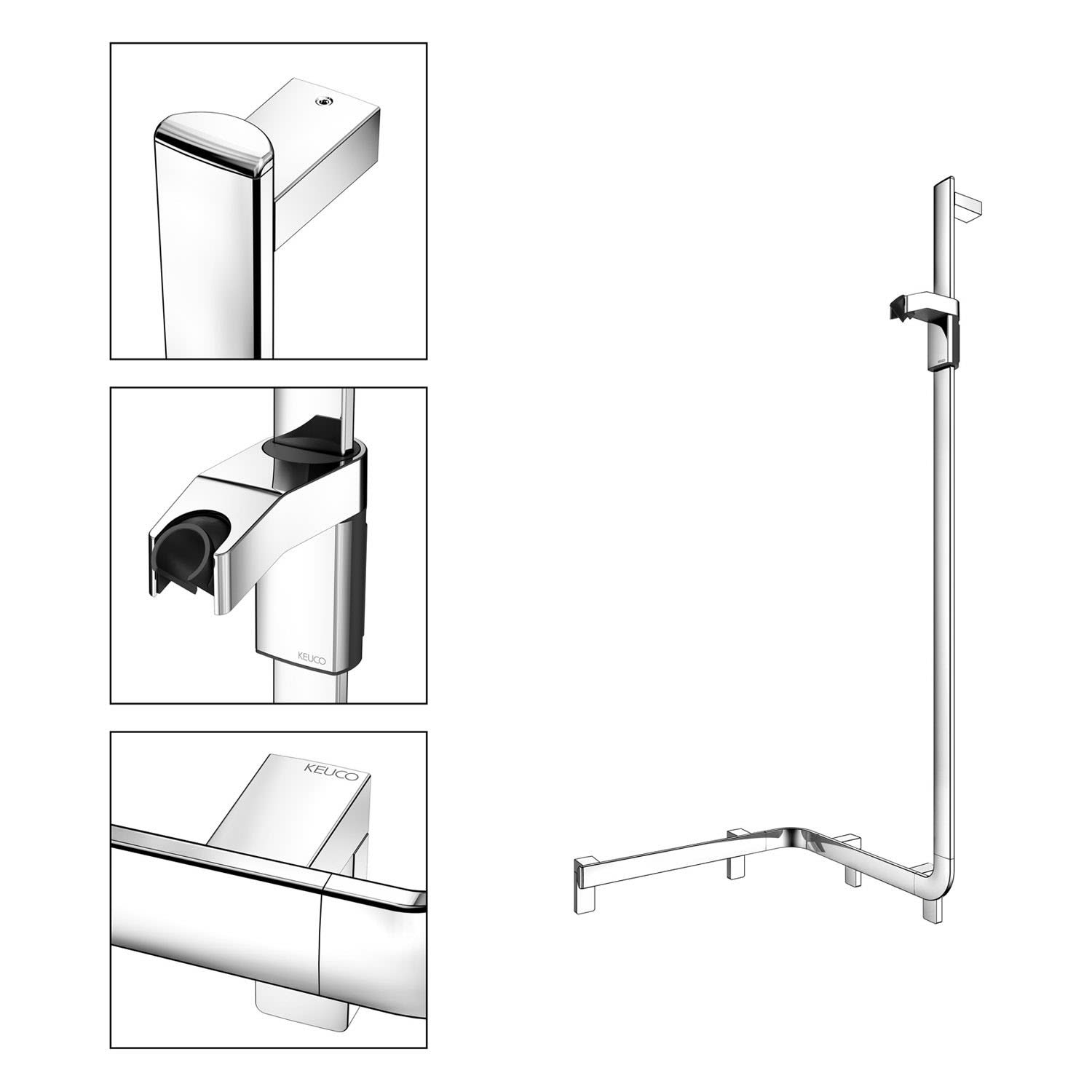 Keuco AXESS Eck-Duschhandlauf 90° mit Brausestange rechts, 53,1 x 55 x 130,1 cm