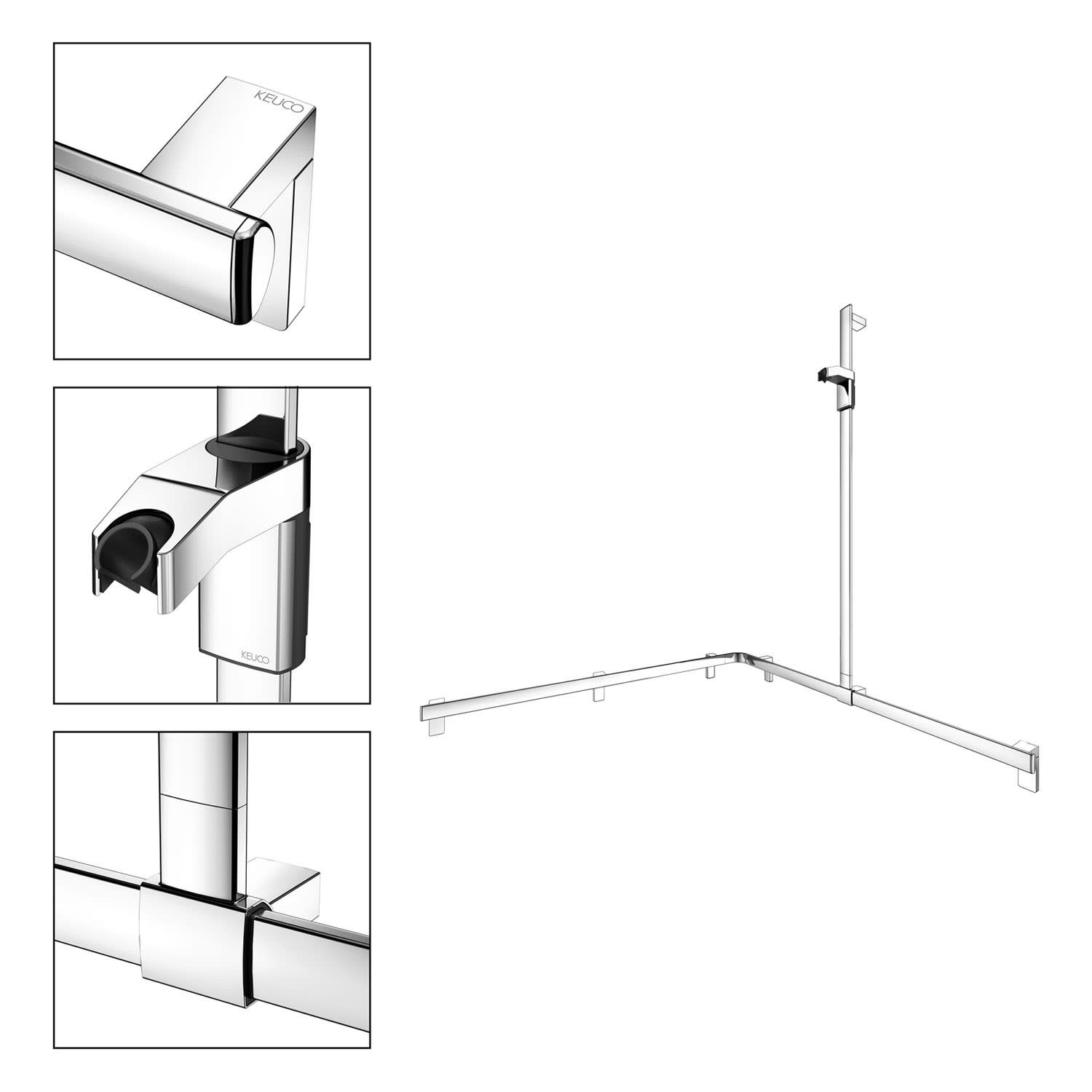 Keuco AXESS Eck-Duschhandlauf 90° mit Brausestange, 115 x 115 x 130,1 cm