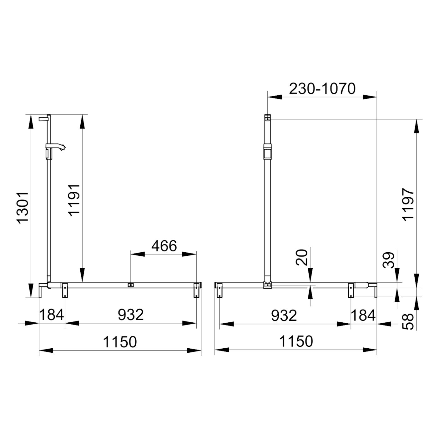 - Mit Brausestange rechts