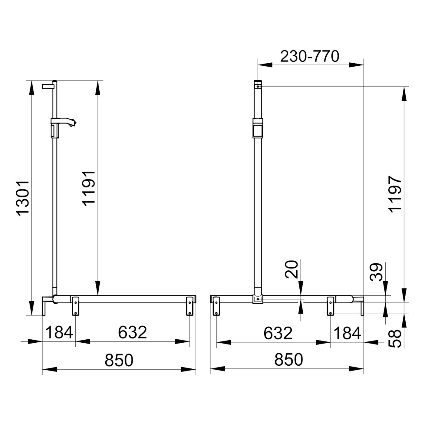 Keuco AXESS Eck-Duschhandlauf 90° mit Brausestange, 85 x 85 x 130,1 cm