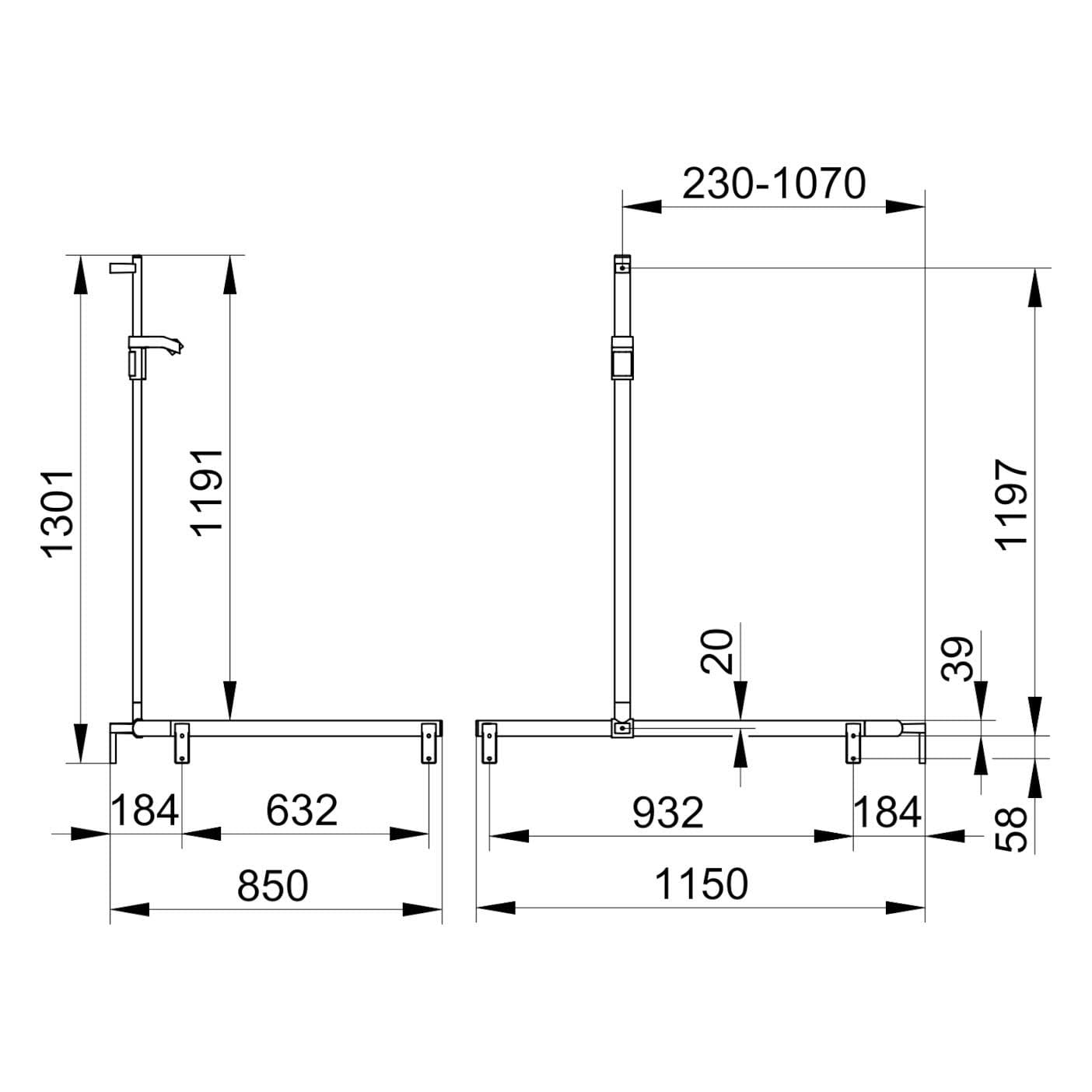 Keuco AXESS Eck-Duschhandlauf 90° mit Brausestange, 115 x 85 x 130,1 cm