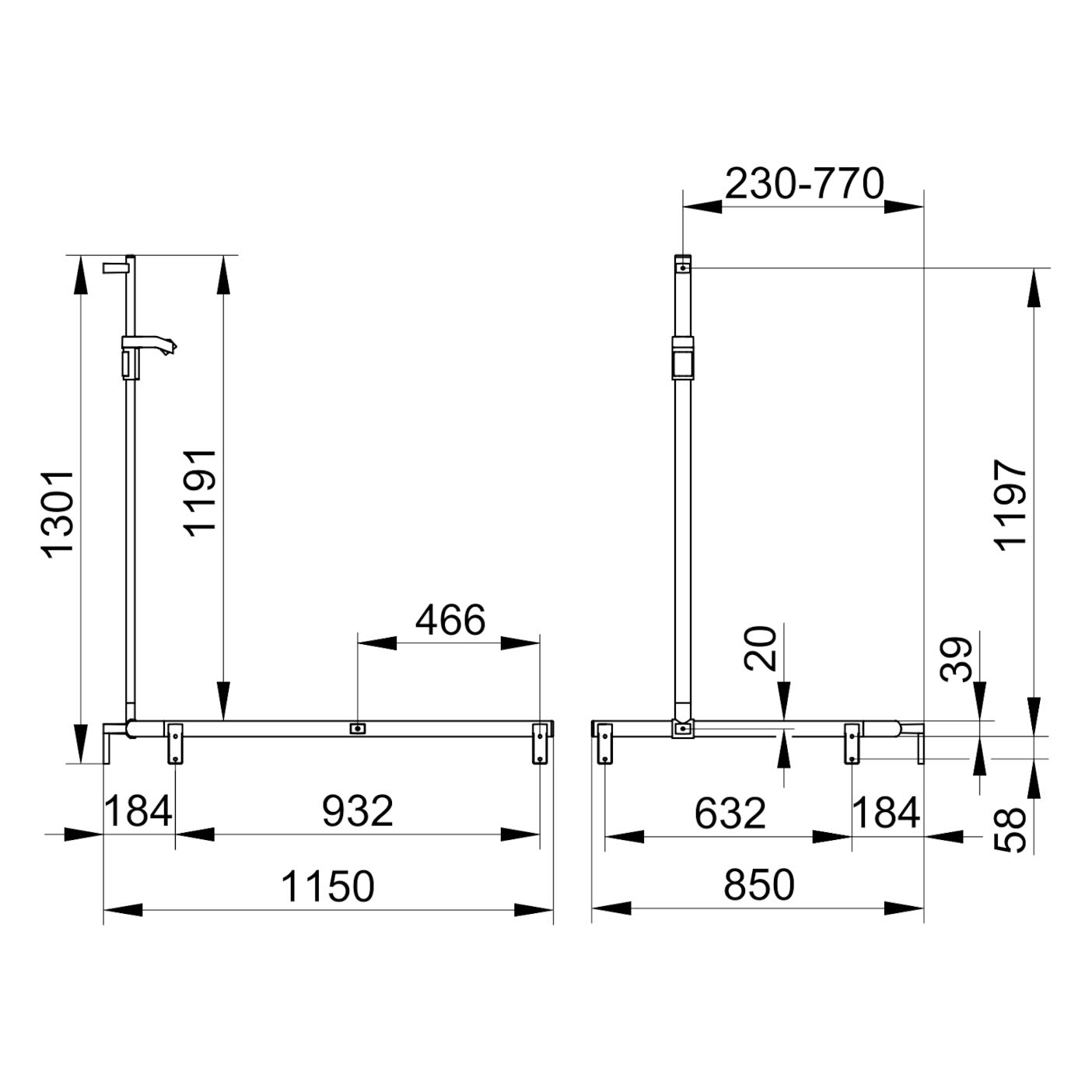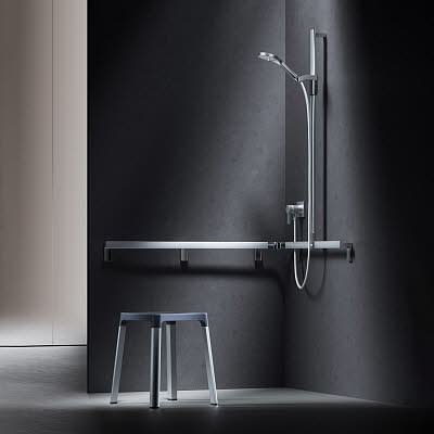 Keuco AXESS Eck-Duschhandlauf 90° mit Brausestange, 85 x 115 x 130,1 cm