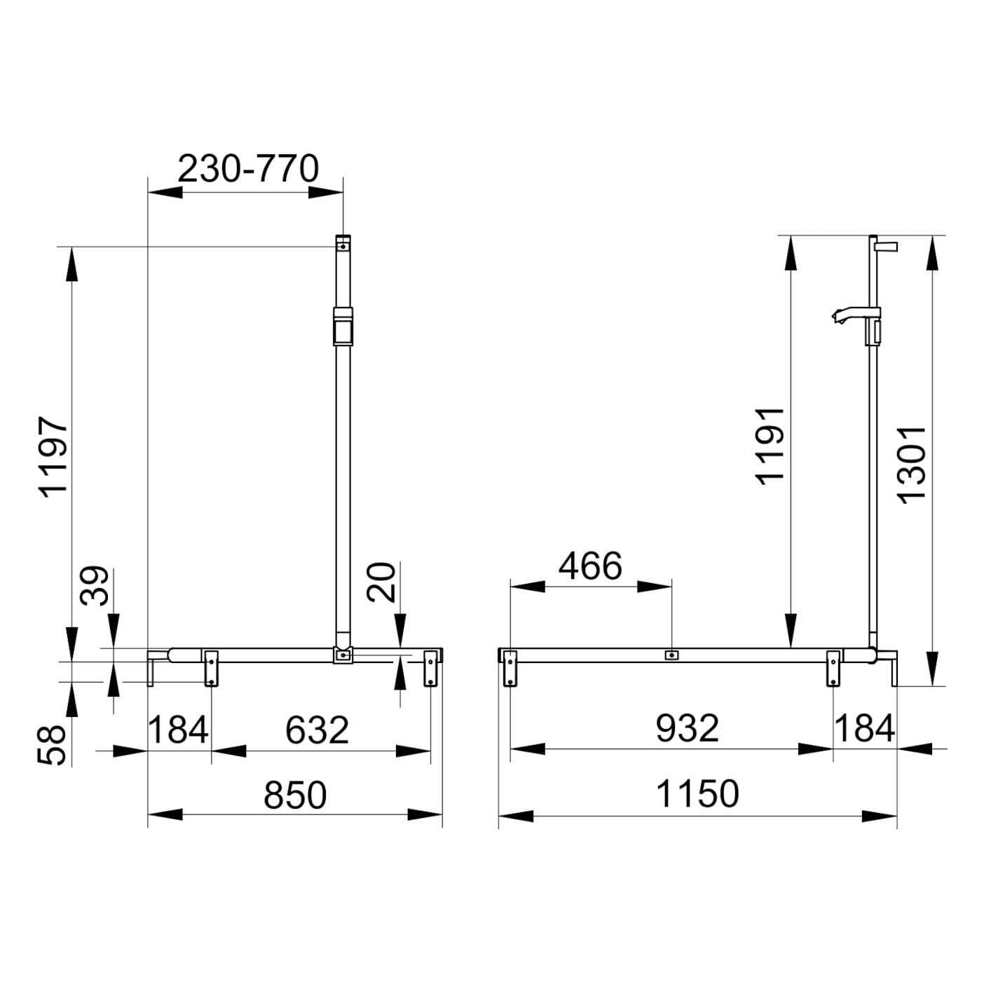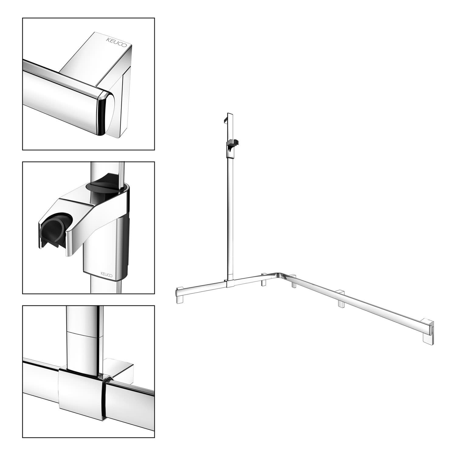 Keuco AXESS Eck-Duschhandlauf 90° mit Brausestange, 115 x 85 x 130,1 cm