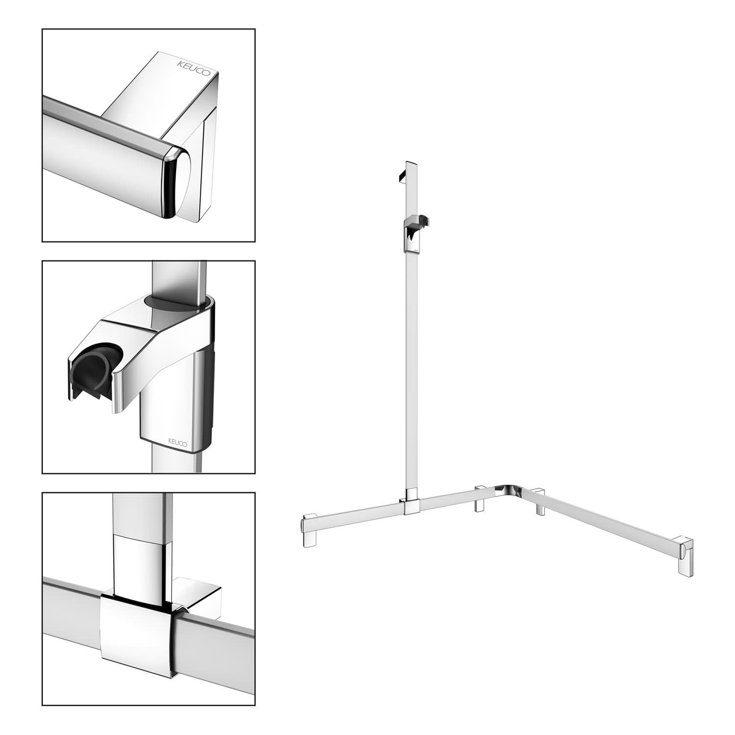 Keuco AXESS Eck-Duschhandlauf 90° mit Brausestange, 85 x 85 x 130,1 cm