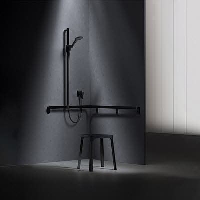 Keuco AXESS Eck-Duschhandlauf 90° mit Brausestange, 115 x 115 x 130,1 cm