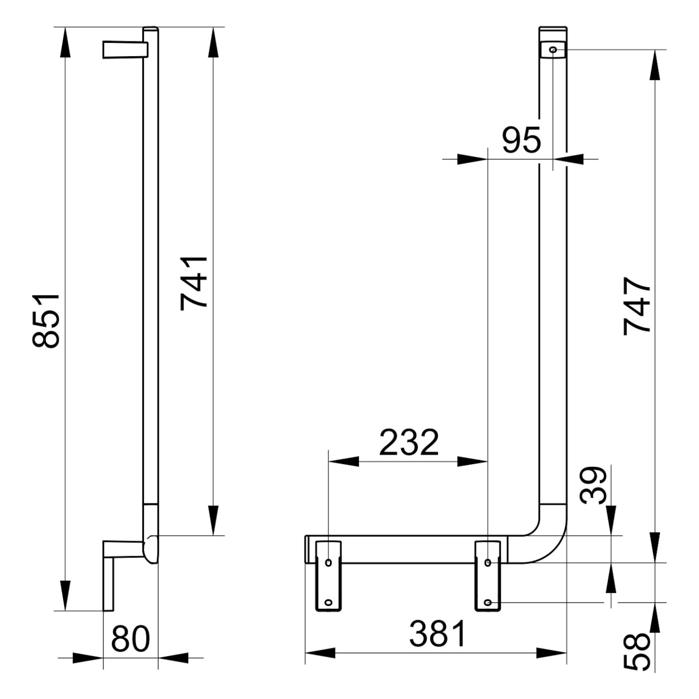 Keuco AXESS Winkelgriff 90° aus Metall, linke Ausführung, 38,1 x 85,1 cm