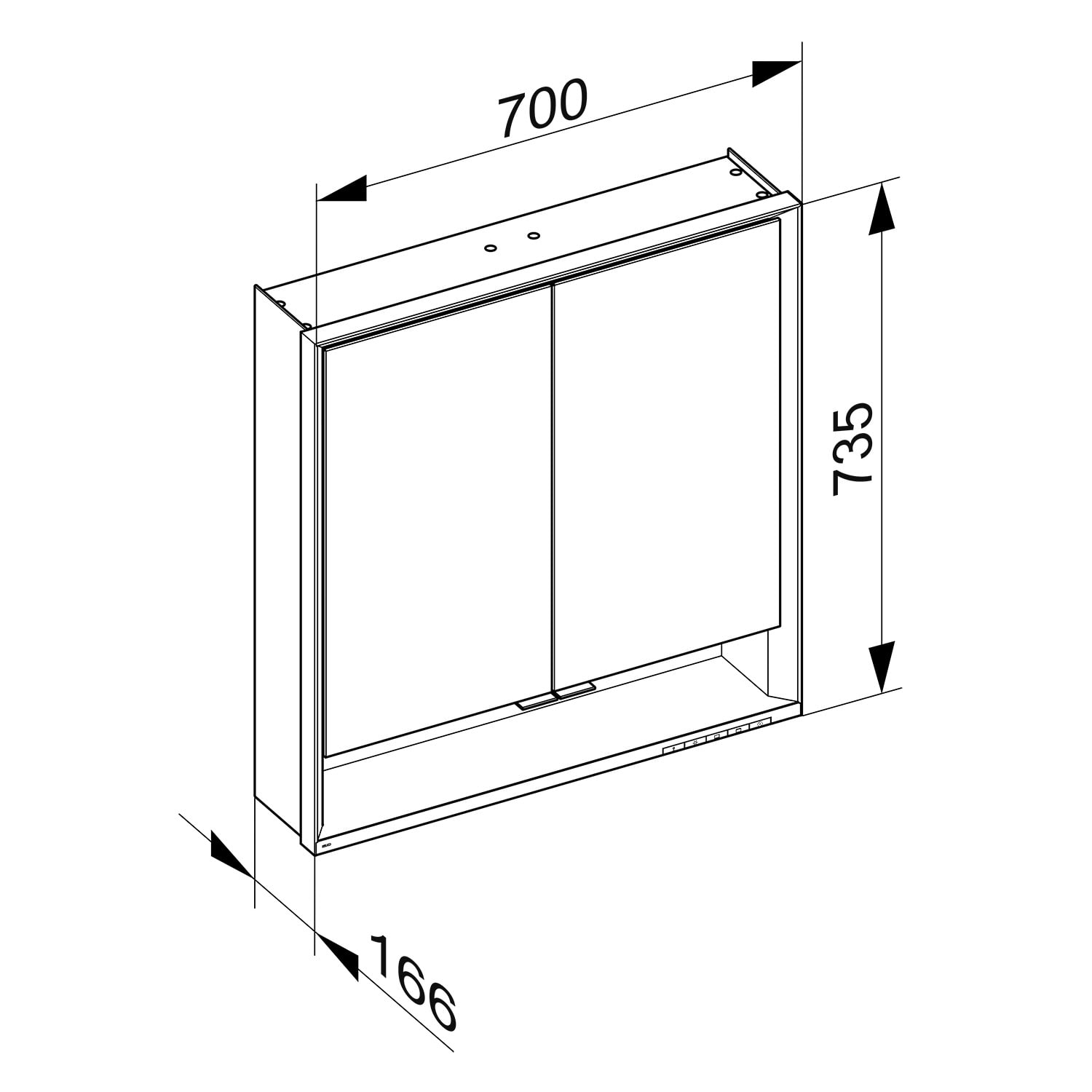 Keuco Royal Lumos Wandvorbau Spiegelschrank 70 x 73,5 cm, offene Ablage
