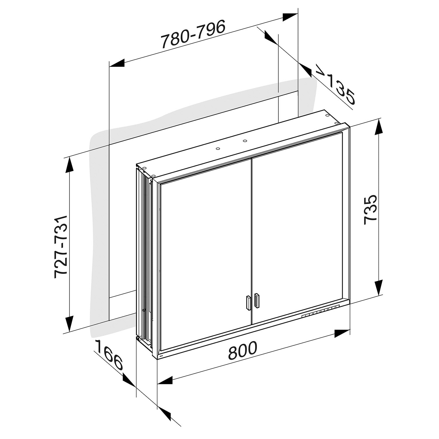 Keuco Royal Lumos Wandeinbau Spiegelschrank 80 x 73,5 cm, verdeckte Ablage