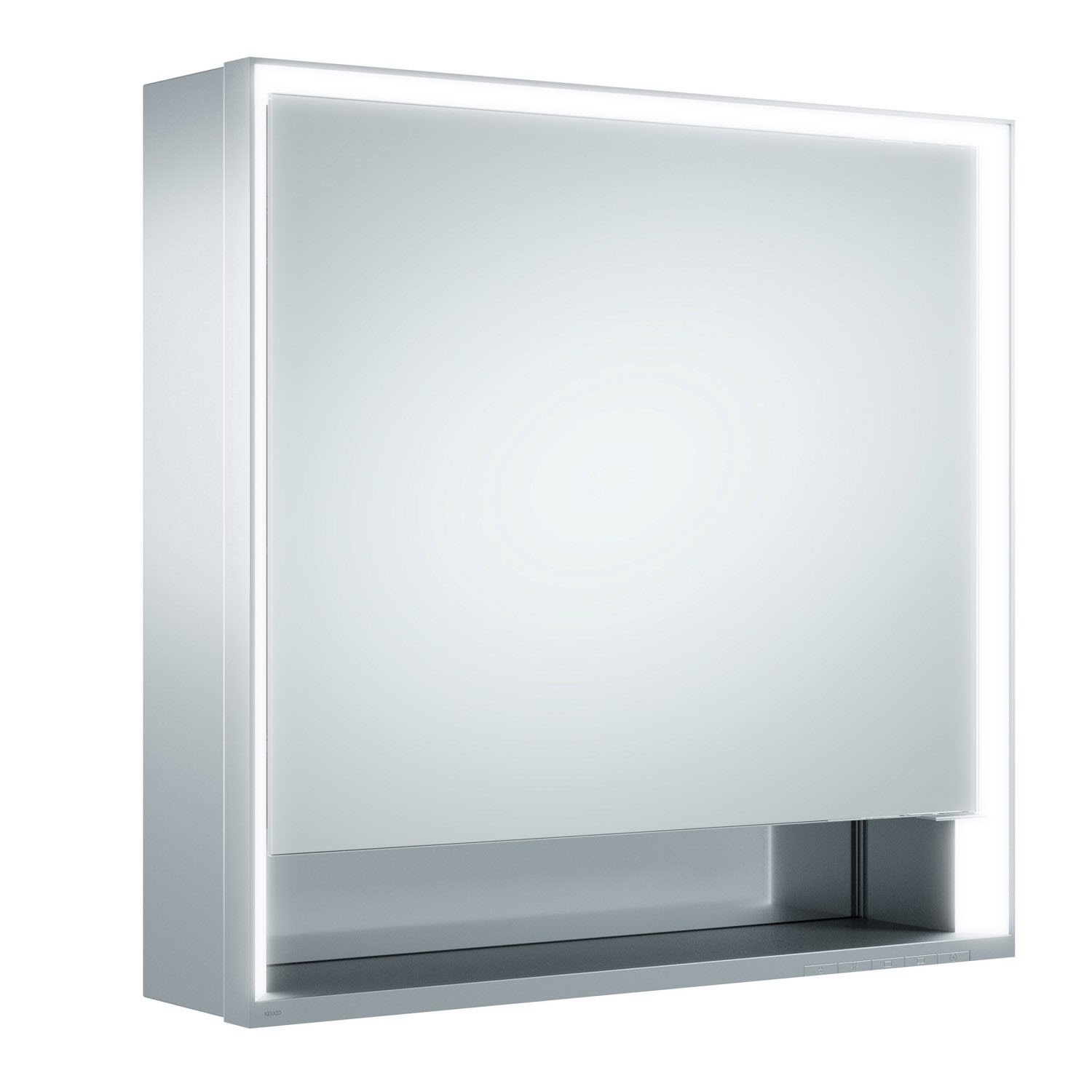 Keuco Royal Lumos Aufputz-Spiegelschrank 65 x 73,5 cm mit Spiegelheizung, LED-Beleuchtung, 1 Tür, Anschlag links