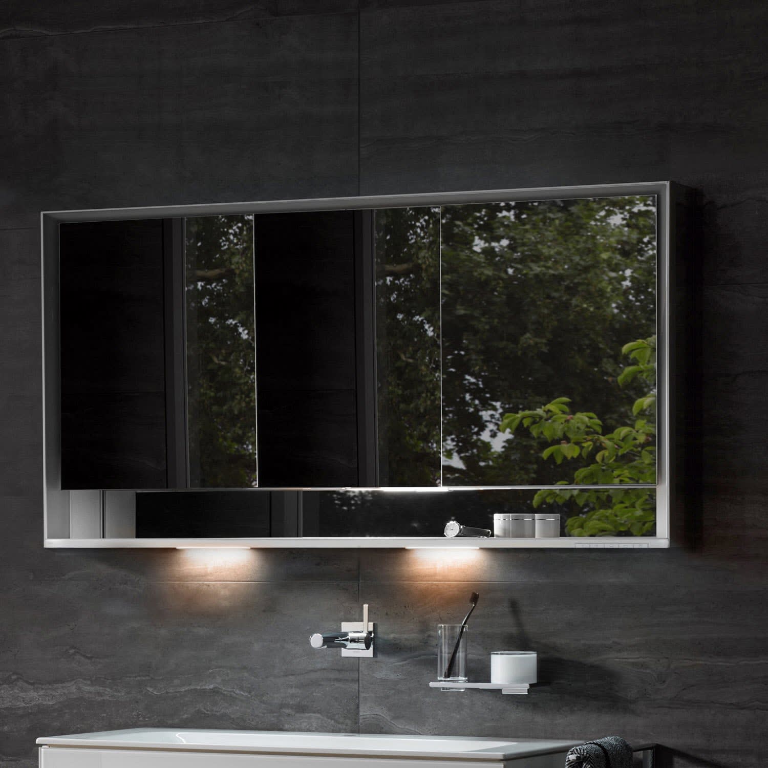 Keuco Royal Lumos Aufputz-Spiegelschrank 120 x 73,5 cm mit Spiegelheizung, LED-Beleuchtung, 3 Türen