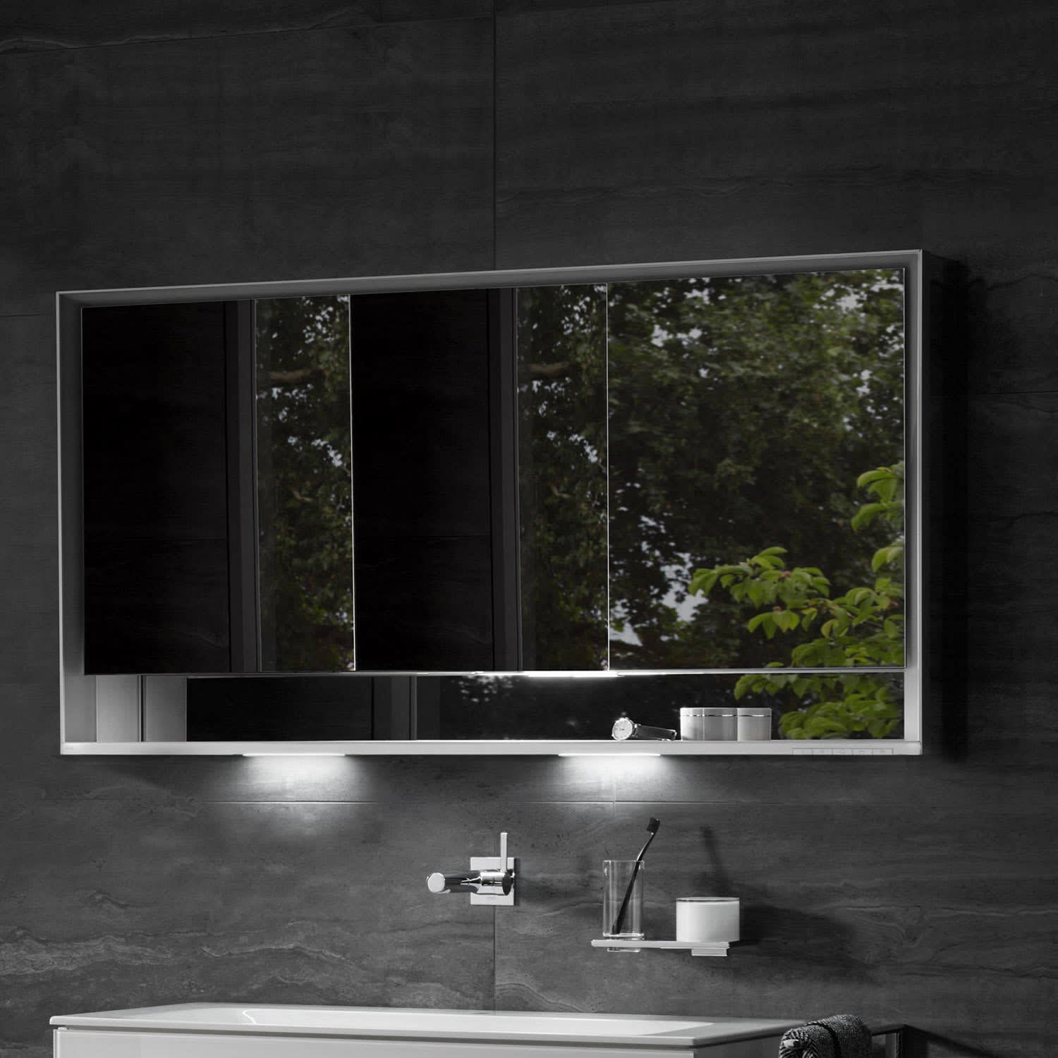 Keuco Royal Lumos Aufputz-Spiegelschrank 140 x 73,5 cm mit Spiegelheizung, LED-Beleuchtung, 3 Türen