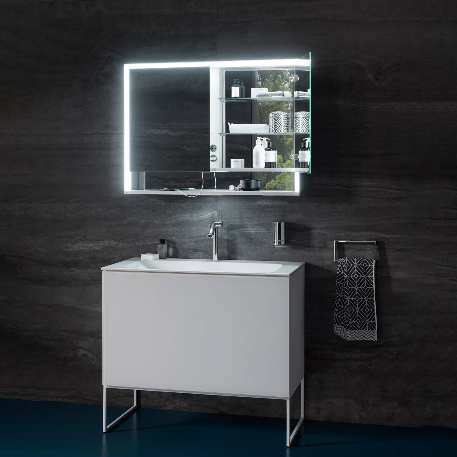 Keuco Royal Lumos Aufputz-Spiegelschrank 70 x 73,5 cm mit Spiegelheizung, LED-Beleuchtung, 2 Türen