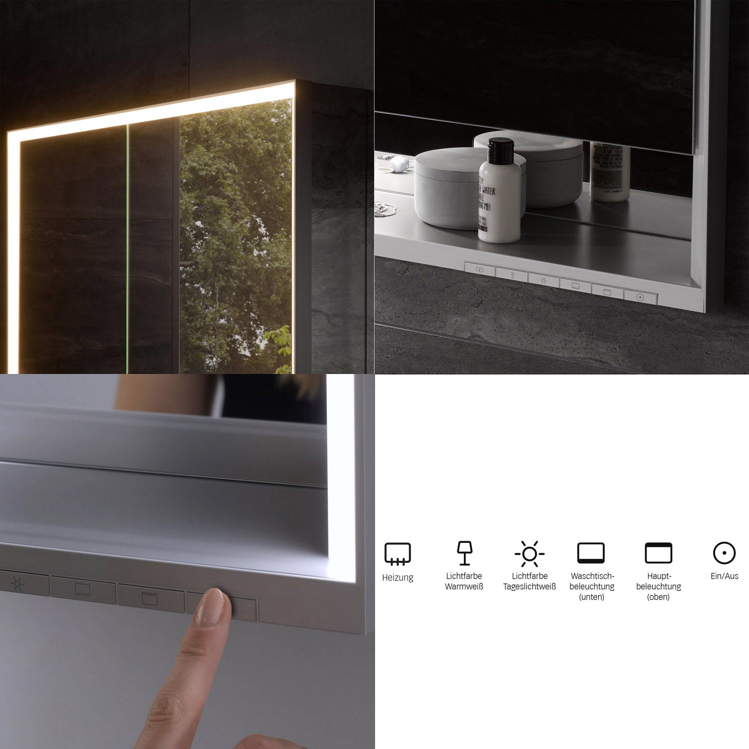 - Hauptbeleuchtung und Waschtisch- / Fachbeleuchtung separat dimmbar und schaltbar