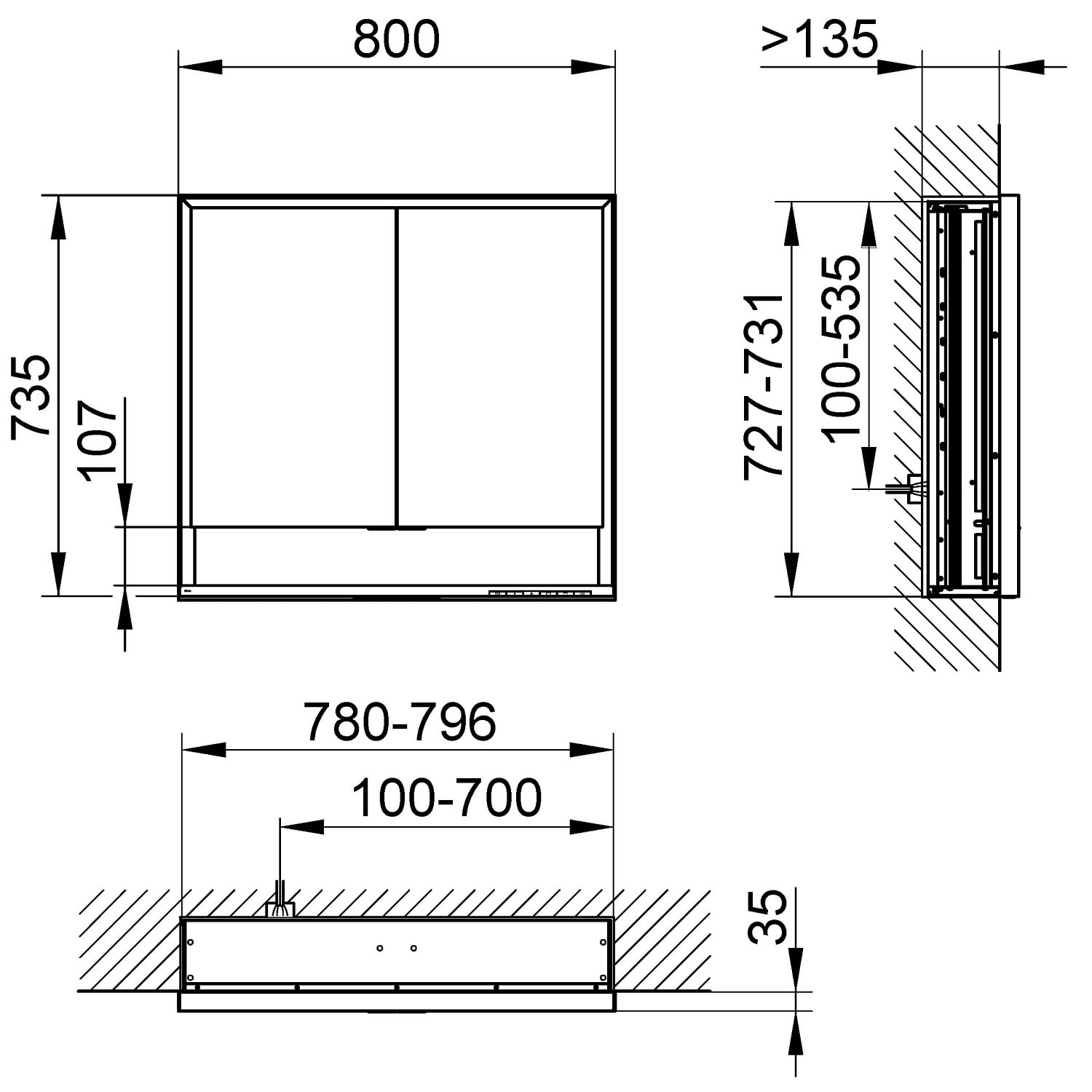 Keuco Royal Lumos Unterputz-Spiegelschrank 80 x 73,5 cm mit Spiegelheizung, LED-Beleuchtung, 2 Türen