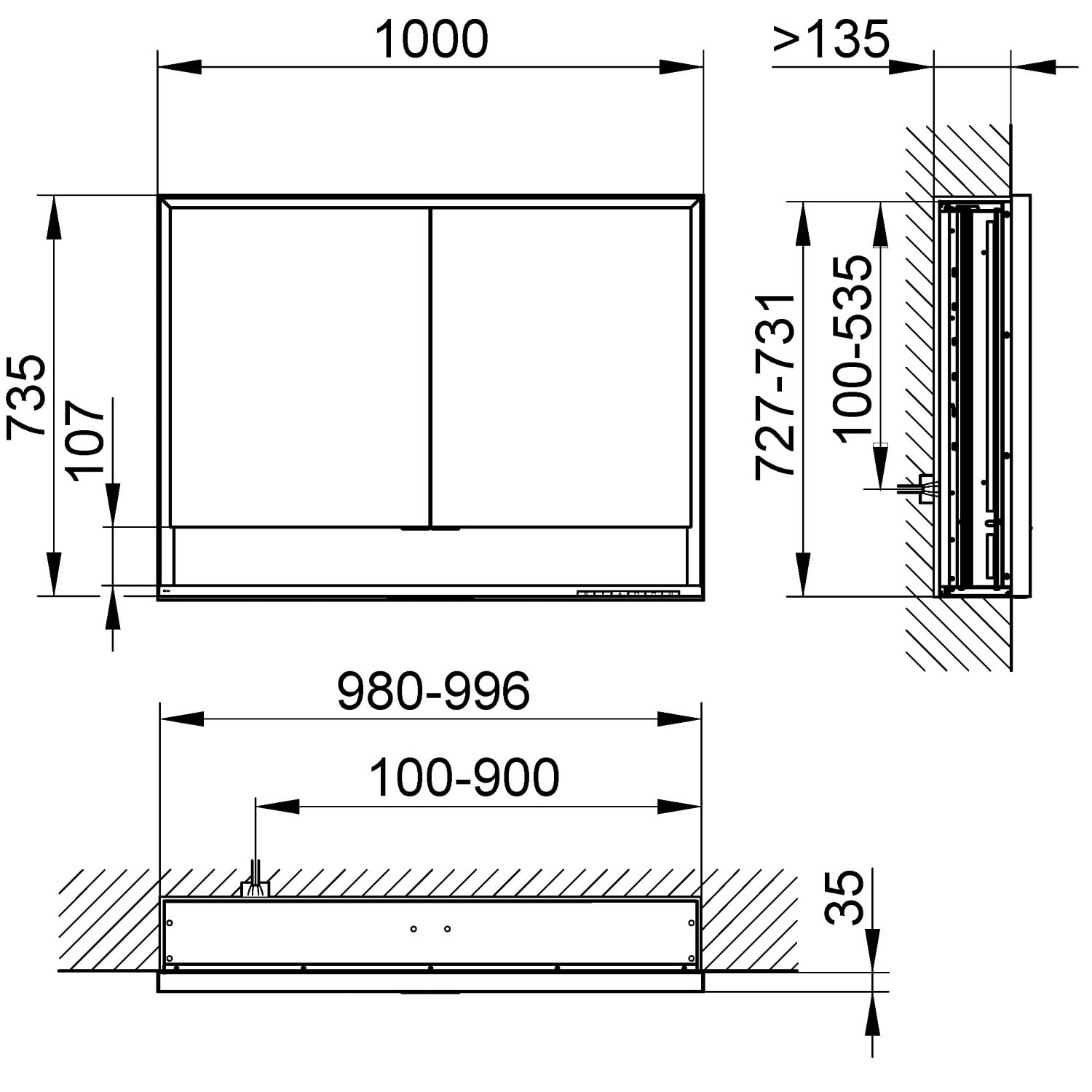 Unterputz, 2 Türen, offene Ablage