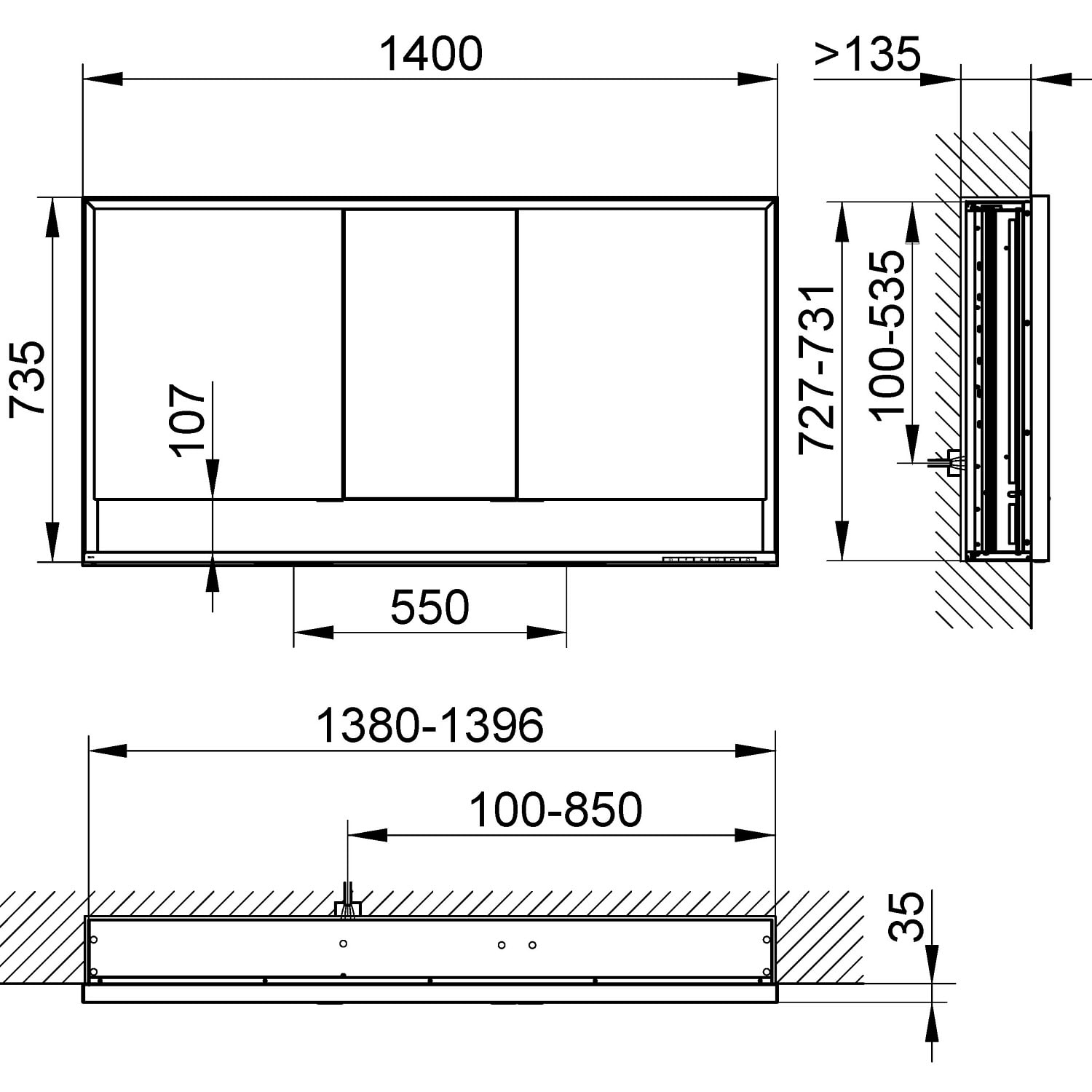 Keuco Royal Lumos Unterputz-Spiegelschrank 140 x 73,5 cm mit Spiegelheizung, LED-Beleuchtung, 3 Türen
