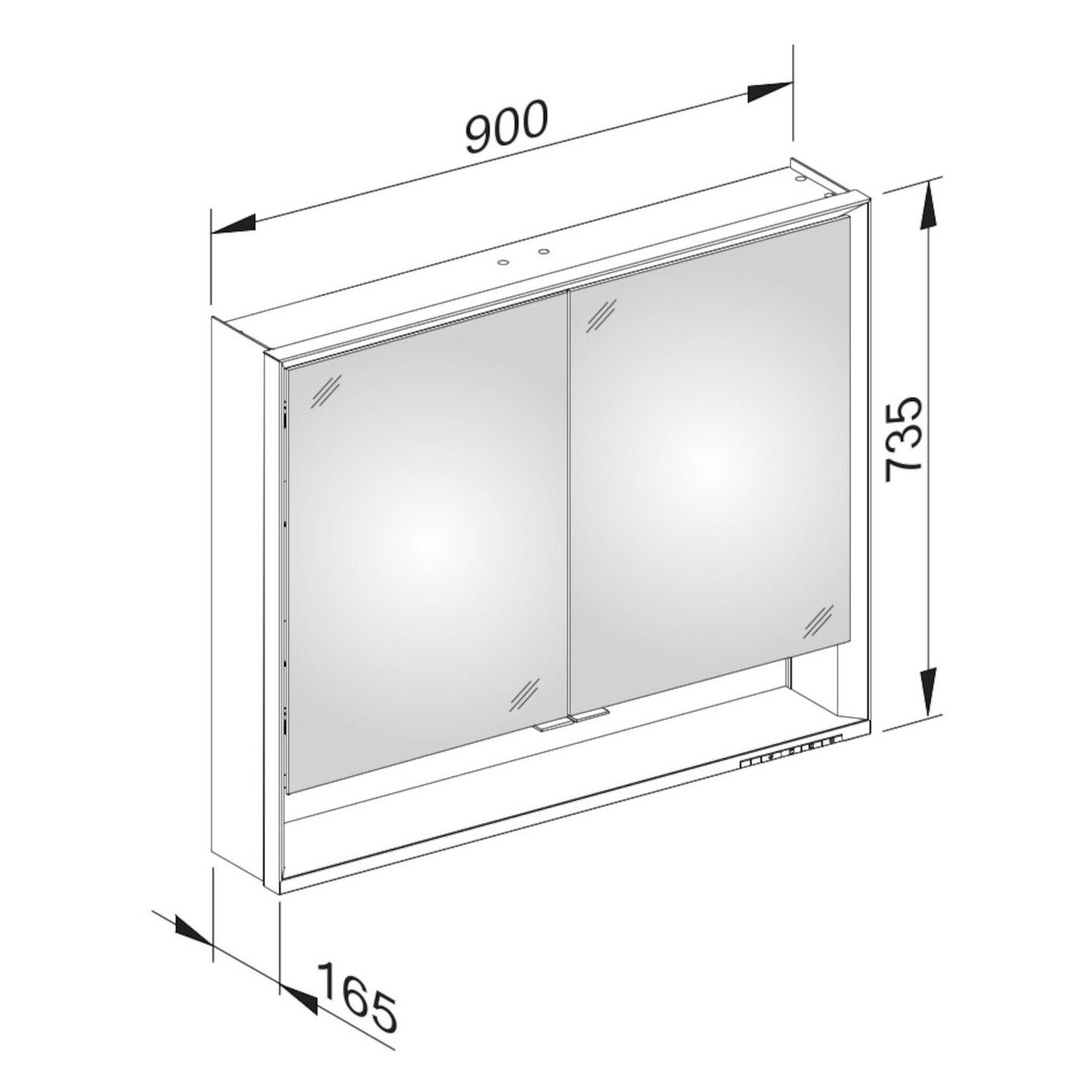 Keuco Royal Lumos Wandvorbau Spiegelschrank 90 x 73,5 cm, 2 Türen, offene Ablage, CH Version