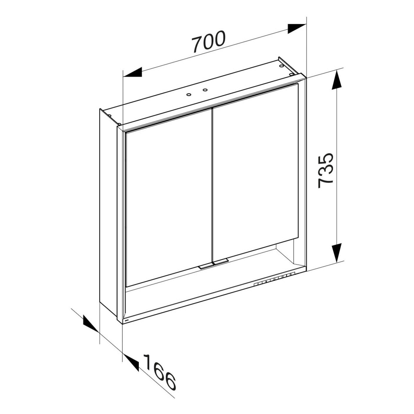 Keuco Royal Lumos Wandvorbau Spiegelschrank 70 x 73,5 cm, 2 Türen, offene Ablage, CH Version